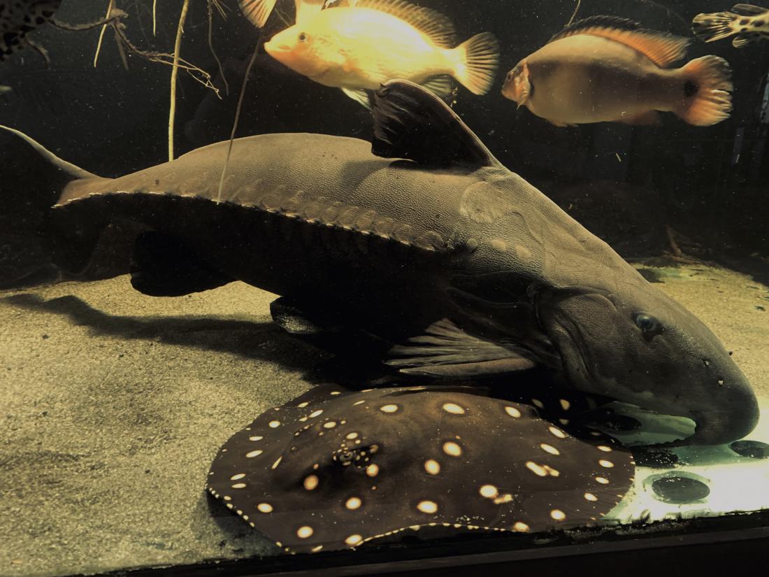 Rok dozadu som ho meral a mal neaký 90 cm a už som myslel, že rásť bude už minimálne, ale potiahol ho na meter. Som zvedavý koľko cm bude mať o rok neskôr. Darí sa mu dobre v nádrži aj ako jediný prežil "katastrofu" z ľadovou vodou a vďaka nemu ma to v tej dobe nakoplo pokračovať ďalej...