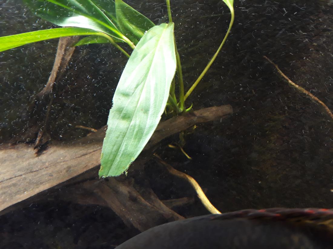Zkoušel jsem přivázat ke kořenu celkem velkej trs Anubiasu kterej jsem dostal od kamaráda ale s těmahle rybama fakt nemám na kytku nárok.
