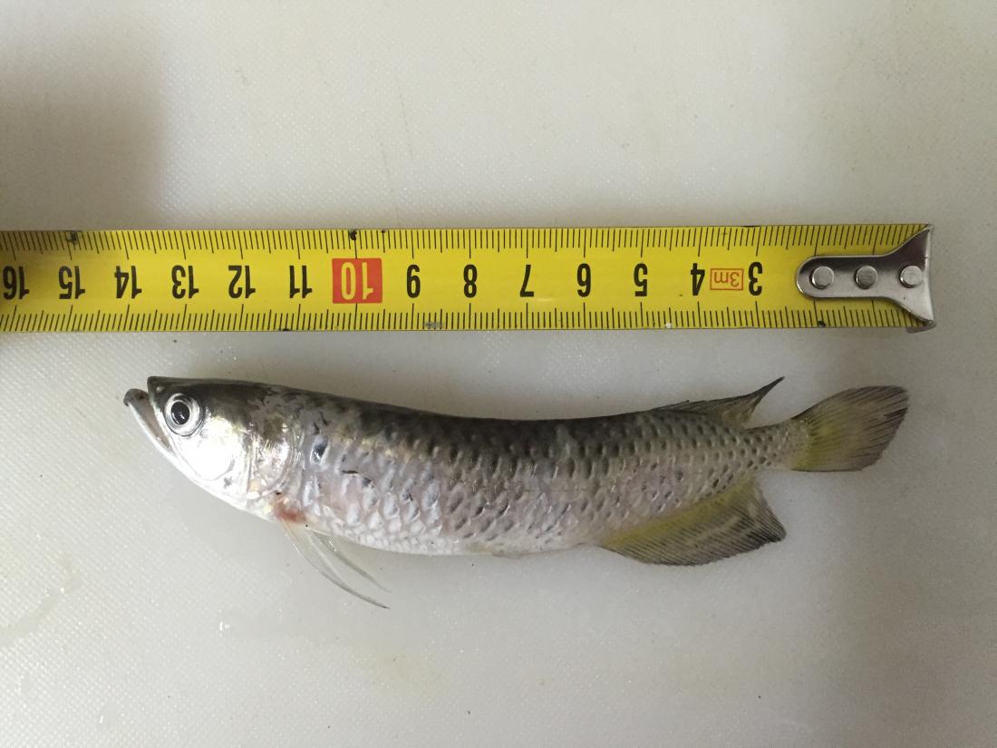 Teraz kŕmim po dva - tri cvrčky 3-4 krát denne, tak ako sa mi dá. No už to konečne vyzerá ako mini arowana, nie ako červík.