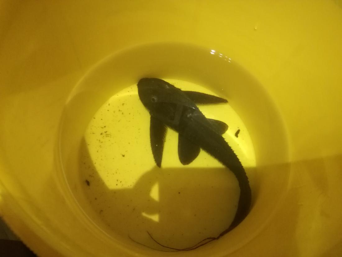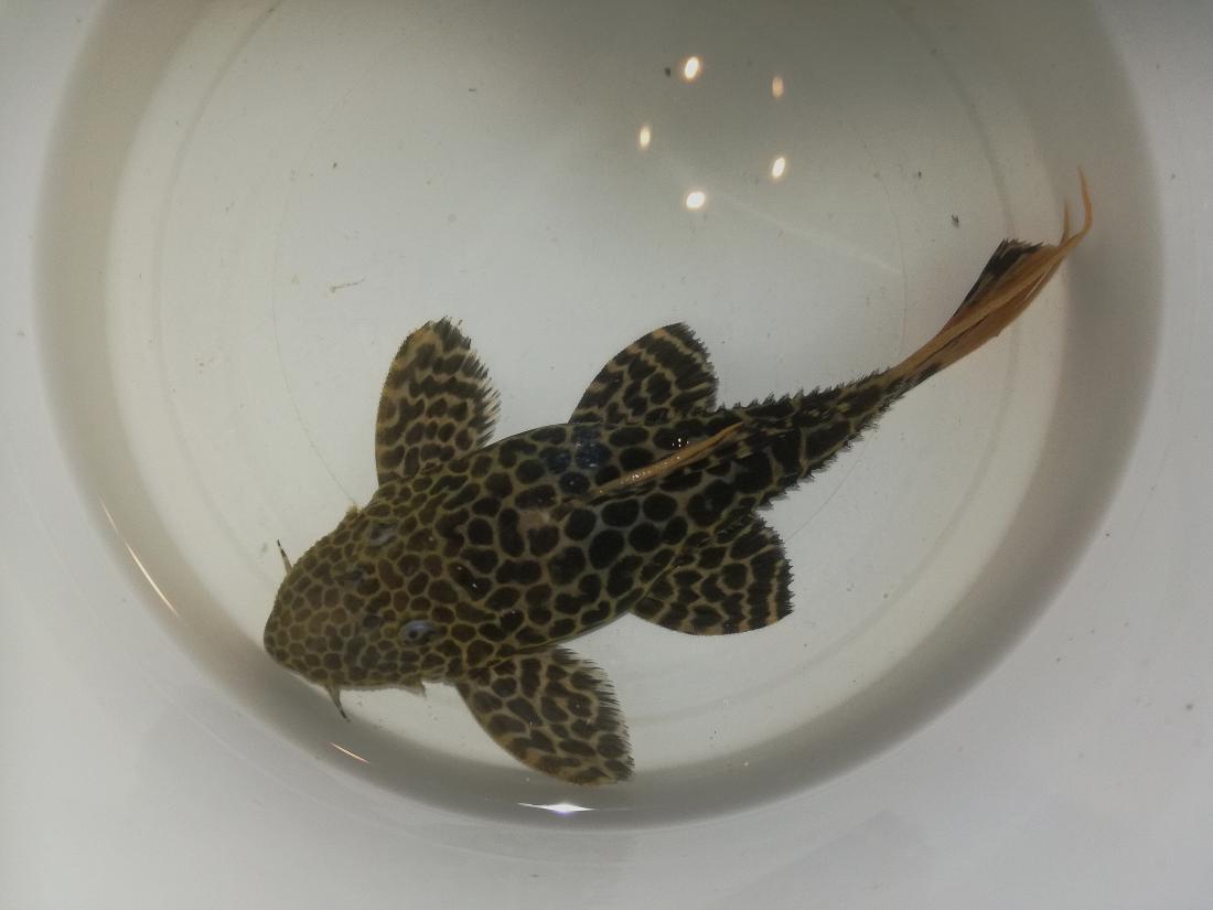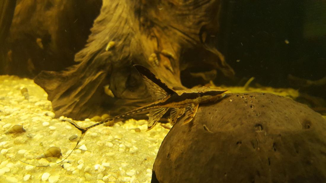Přijde mi docela malý, ten můj je o dost větší, takže tenhle kousek ještě poporoste. Když sem měl zebriny, tak vůbec nevylezl zpoza kořenu, ale teď jak jsou v akváriu jen malé cichlidy, tak se občas ukáže.