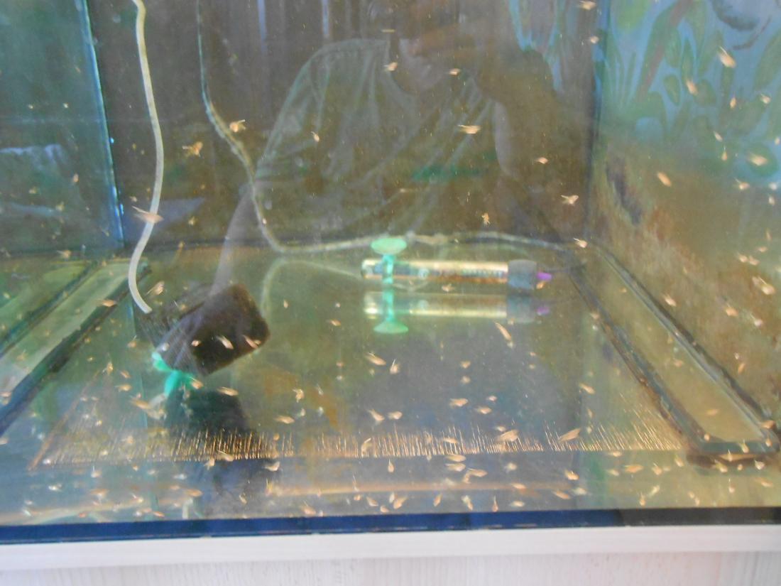 Přikládám fotky dvou výtěrů počet mladých 250 stáří rybek asi 2 týdny a tři dny.