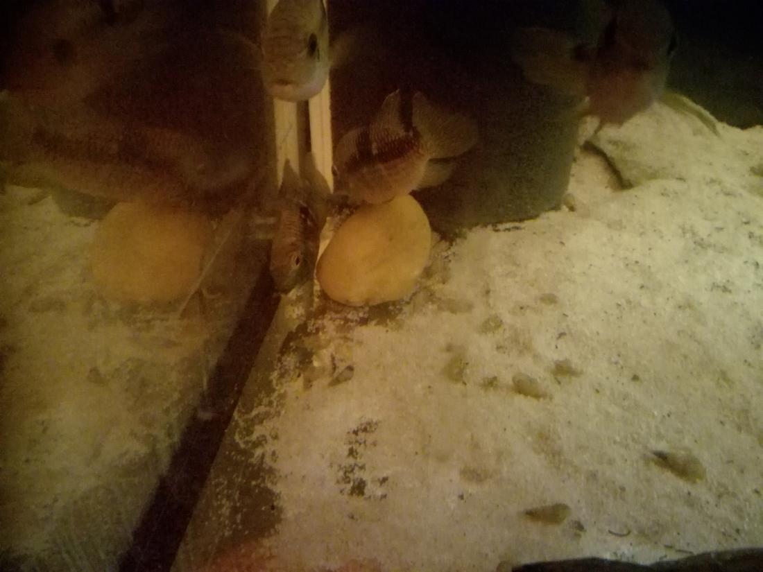Jedna samice se pěkně točí okolo samce zmodraly jí skřele vybarvila se a občas čistí kámen.
