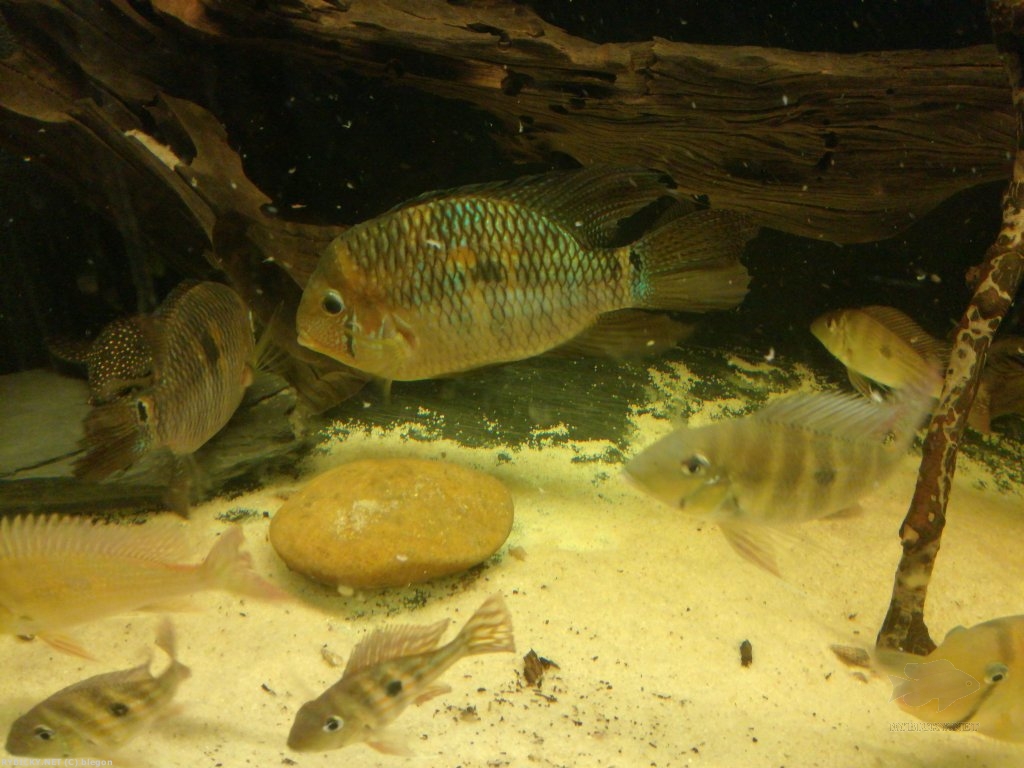 Jj jsou . Tady ve 450L je to znát, protože tam jsou spíše mladí geoši. V 900L by to byly ryby "běžné" velikosti a samci abalios jsou určitě větší. Ale v mohutnosti na ně geoši nemají.