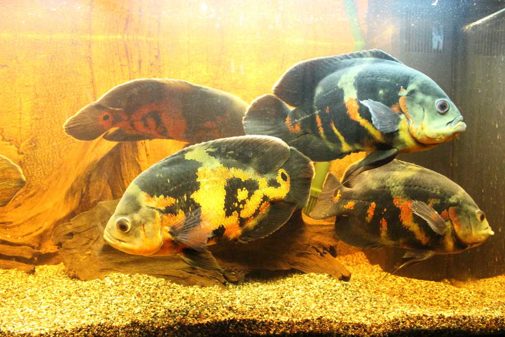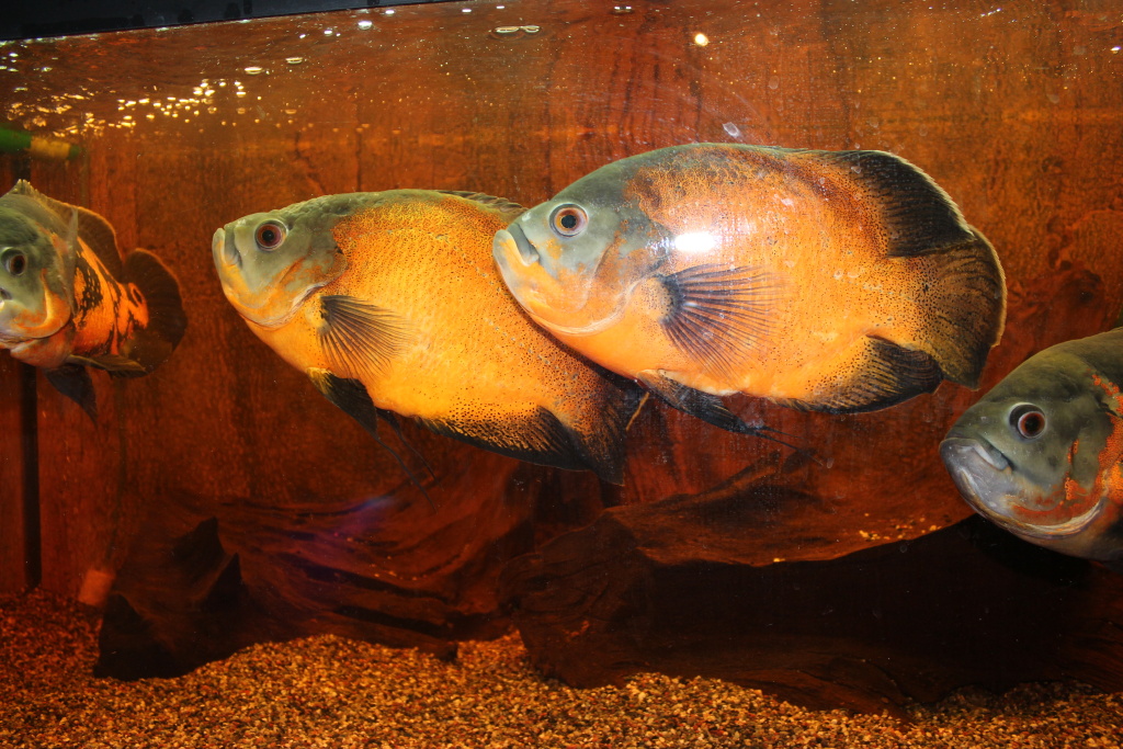 Neviem ani veľkosť rýb, ani veľkosť akvária. Ja som to ešte nevidel. No chystáme návštevu :)