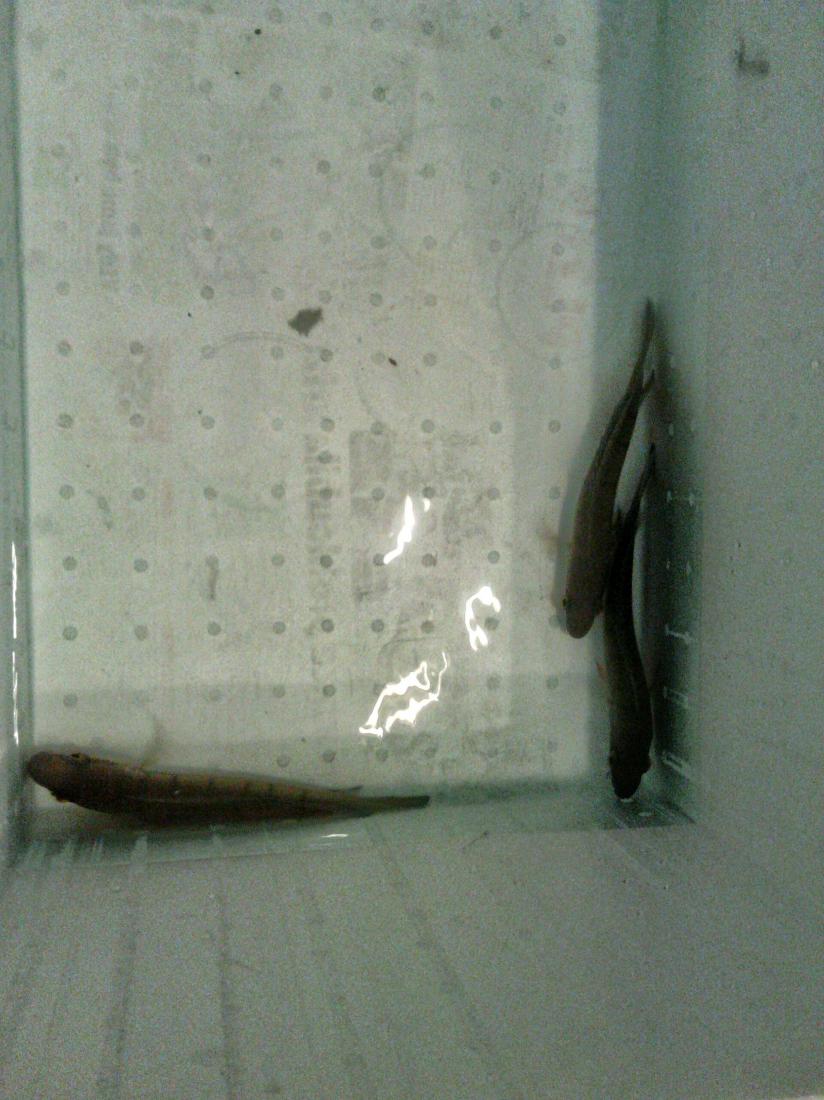 Jak na ně koukám v nádrži tak ztmavli jsou do červena a za hlavou mají černý flek.