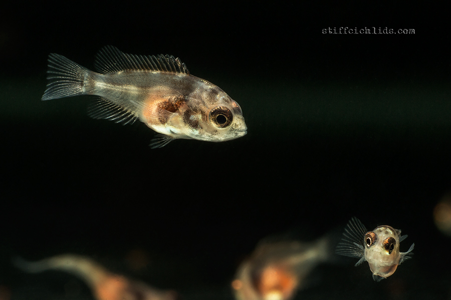 Na foto samica nad ikrami, samec v 2000l akva medzi SA cichlidami (dostáva zabrať) a malý prd asi 1cm ani nie :)