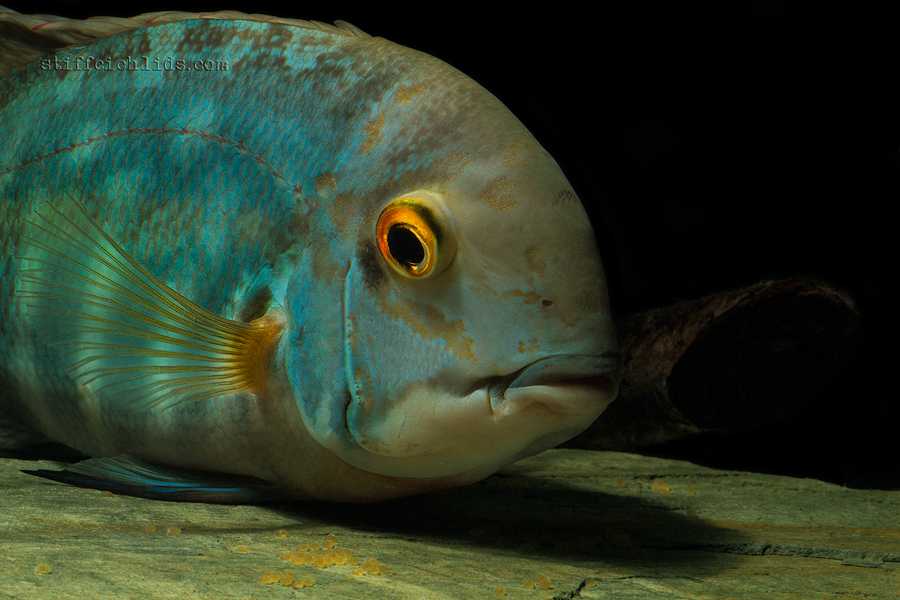 Pripájam nejaké fotky. Najkrajšie sú pri trení (dvorení). Poznávacím znakom ich spokojnosti je oko. Čím viac oranžové a svetlejšie (krajšie), tým sa cítia lepšie. Samica má to oko krajšie ako samec. Podobne aj Uaru amphiacanthoides. Oni majú tie oči veľmi podobné. Podľa mňa najkrajšie "rybie oči" :). Veľké jantárové kukadlá :). Samozrejme v mladosti to neplatí, lebo tam sú tie oči ešte nefarebné.
