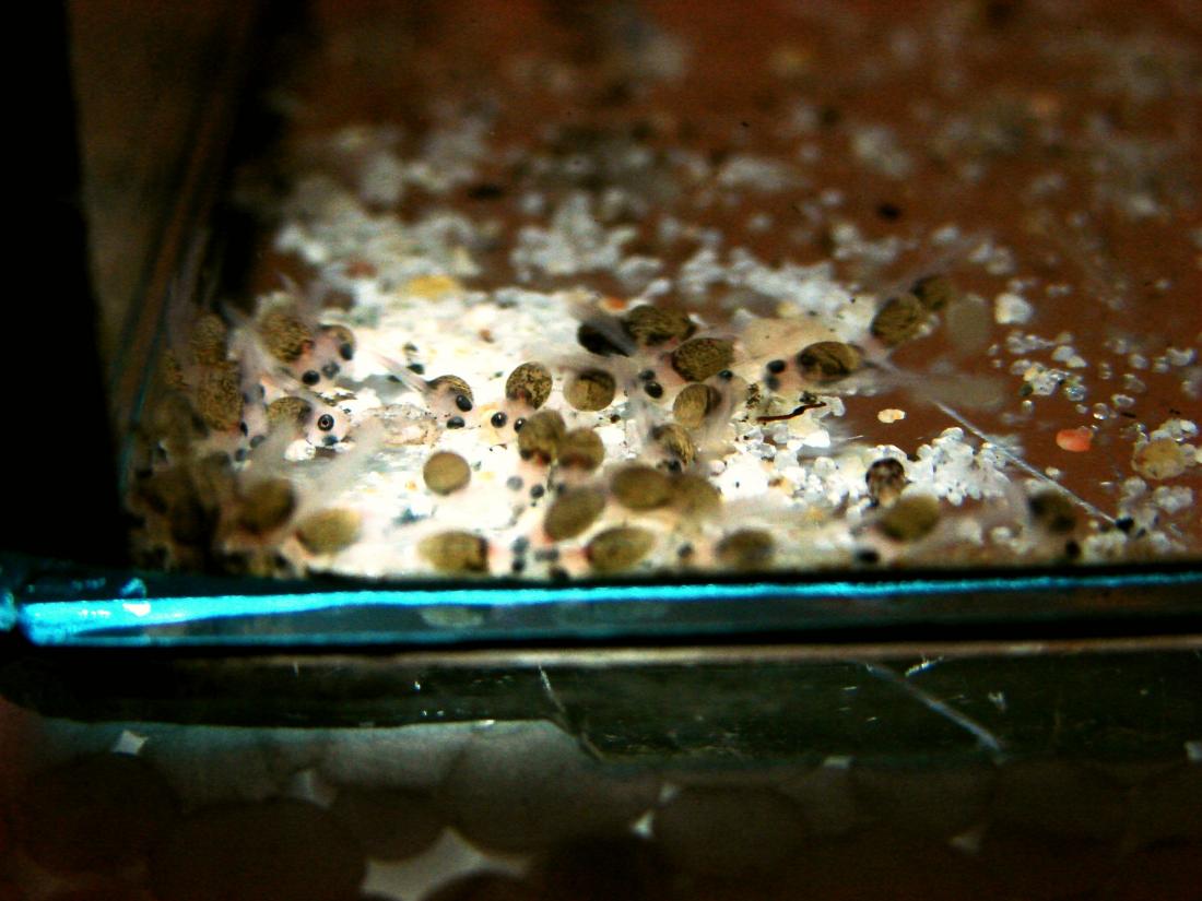 Tentokrát jsem po výtěru nesahal na vodu a ani jsem týden nekrmil ...výsledek? Právě se to kulí ne v malém počtu za asistence samice :lol: