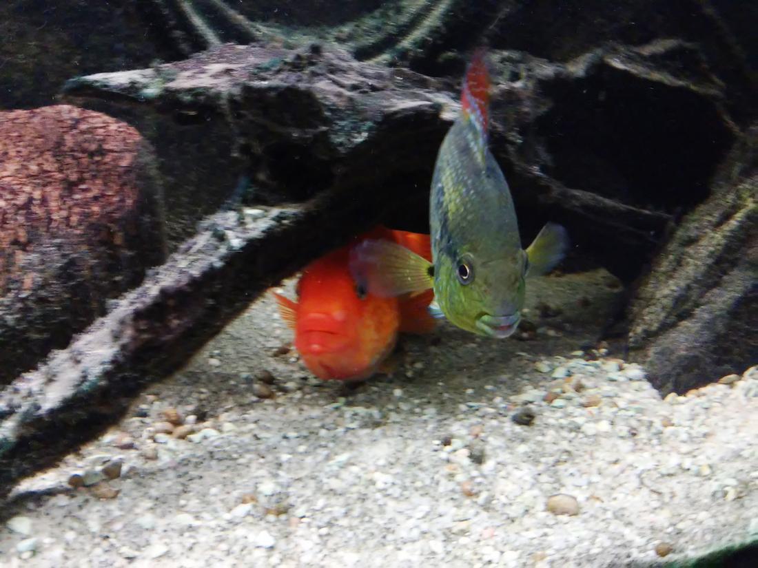 Dneska dle očekávání byly jikry pryč ale samice srdnatě dál bránila prázdnou břidlici. Tak jsem odlovil přebývající pár s otlučeným samcem do 800l.
