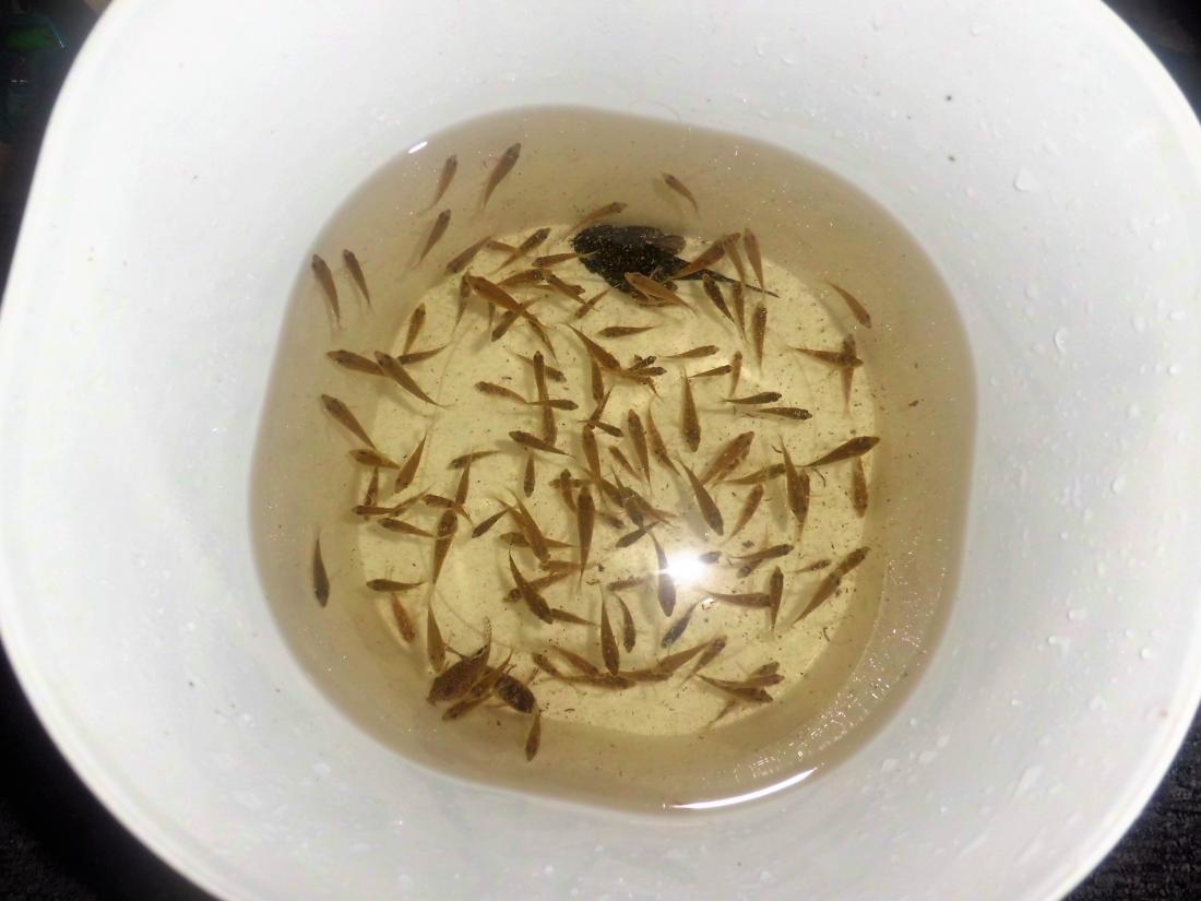 Byli tam už i pekné 5cm ryby.