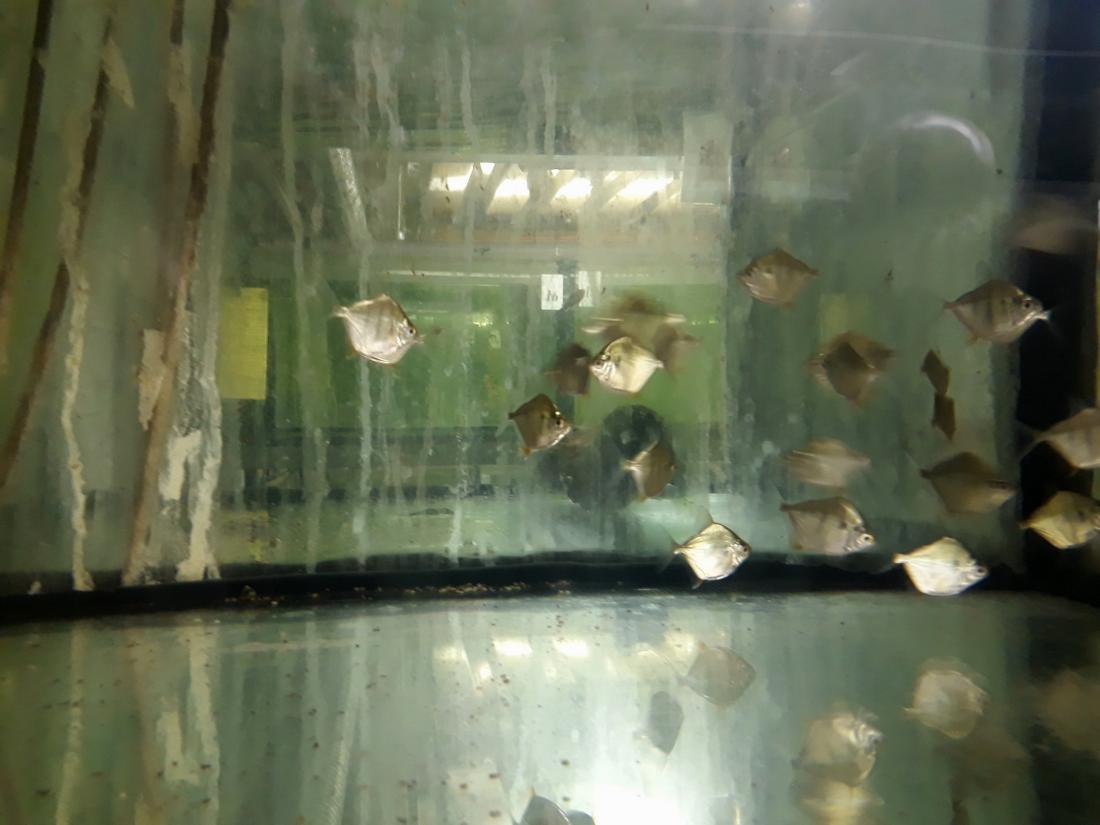 Největší překvapení pro mě nastalo když jsem v jedné rohové horní nádrži narazil na zřídka nabízené Metynnis fasciatus, za krásnou cenu než bývají obvykle k sehnání třeba v Německu nebo Polsku - pokud se vůbec v nabídce objeví. Říkal jsem si že pár kouskama doplním moji skupinku "Metynnis sp. Big spots Peru"