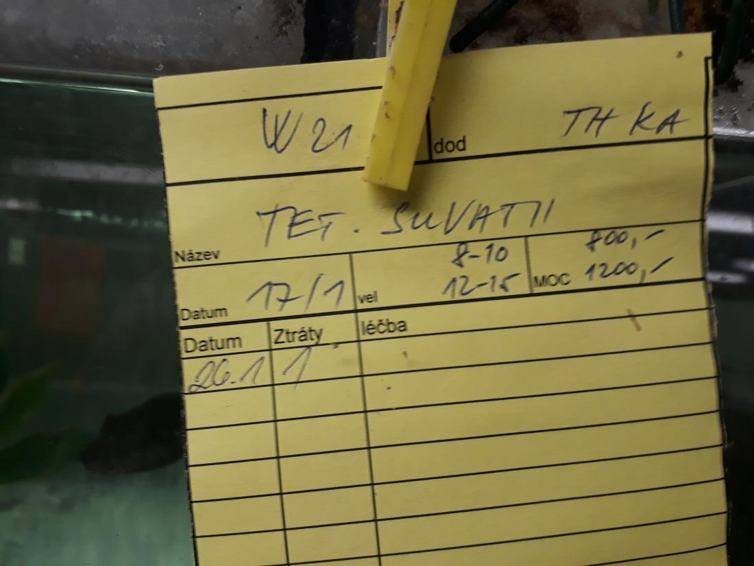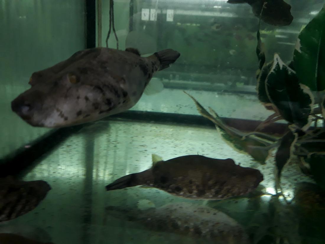 Zajímavá byla taky 3 akvária naplněná různými druhy rodu Tetraodon, vyfotil jsem jen ty největší, nejošklivější a zároveň nejzajímavější Tetraodon suvatii, které měli cca 12cm. Vieja coatzacoalcos, které tam jsou už přes půl roku statečně rostou a domů bych to už nechtěl ani zadarmo, v další nádrži nějací kryplíci evidentně pocházející z nigrofaciatus, a zahlídl jsem i nějaké tetované parroty.