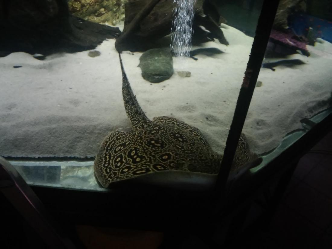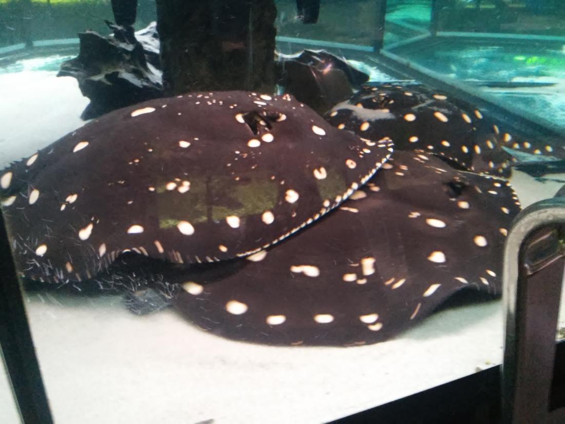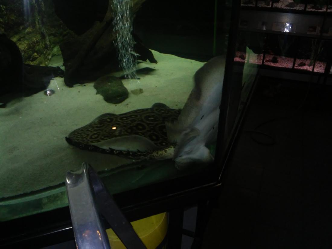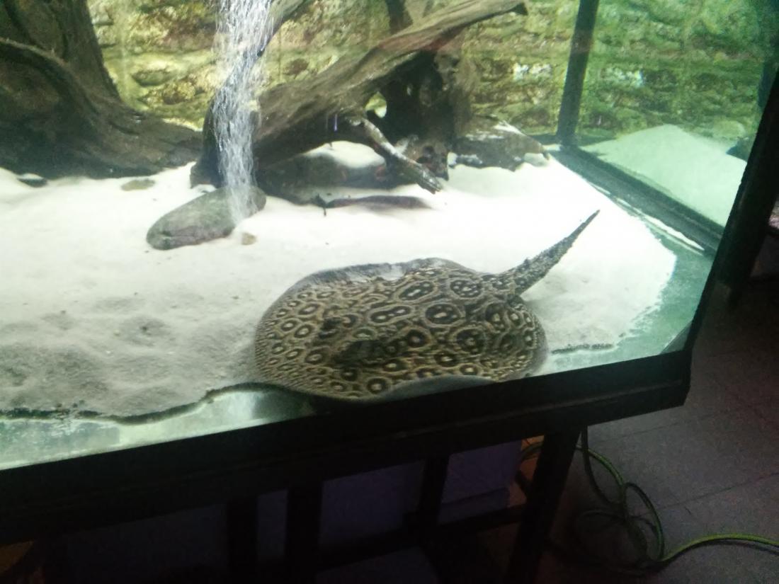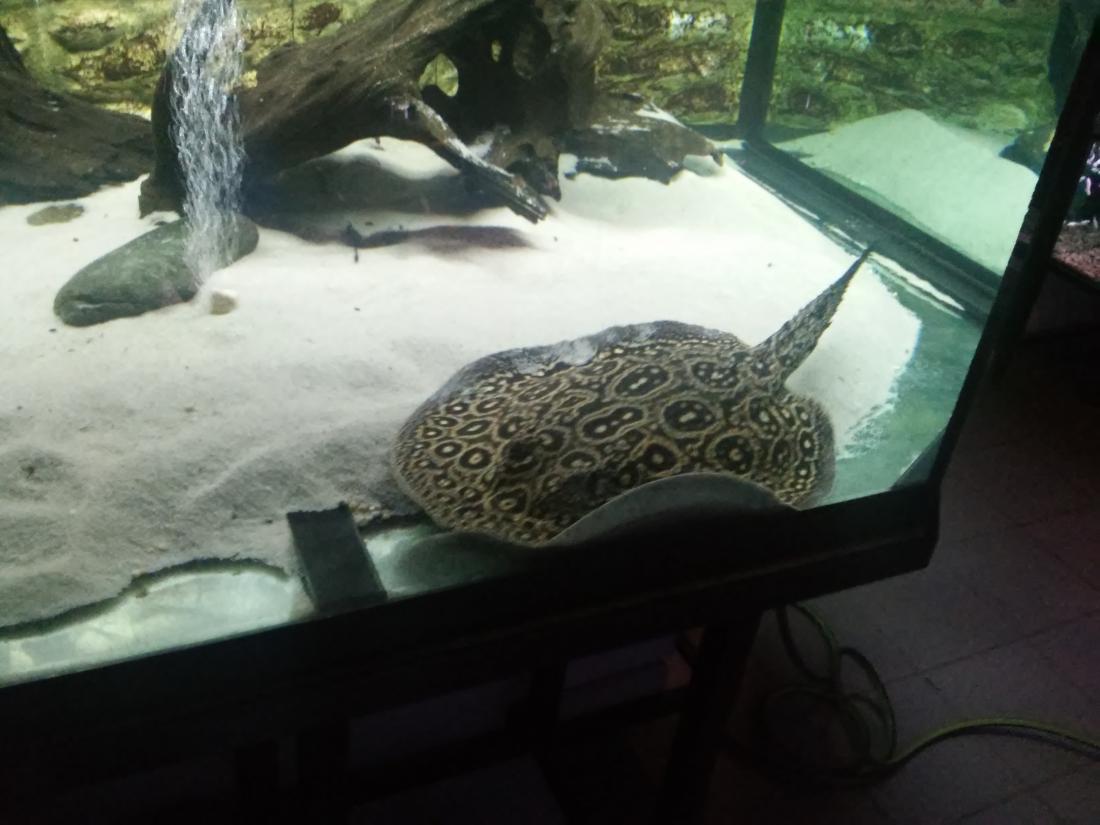 Štítek tam měli jurupari ale já je mezi sebou nerozeznám , bylo to malý stříbrný a měli je v nádrži dohromady s A. heckelii .... Jinak kromě skalárů s pěknejma ploutvema jsem si z klidný JA ničeho snad ani nevšiml , ještě nějaký cichlidky Apisto ale to si fakt nepamatuju jméno . Já slintal nad těma rajema ,cichlama a ocelátem :D . Takový ty pěkný hnědý flekatý trnuchy jsou prý nějaký Potamotrygon sp. pearl a jeden z těch dvou v páru má v sobě albinotickej gen a už se jim několikrát narodili mladý a prý byl v malých podvakrát jeden bílej kus . Jeden umřel jako malej a jeden se dožil dospělosti a jeho cena prý byla 100 000,- ???