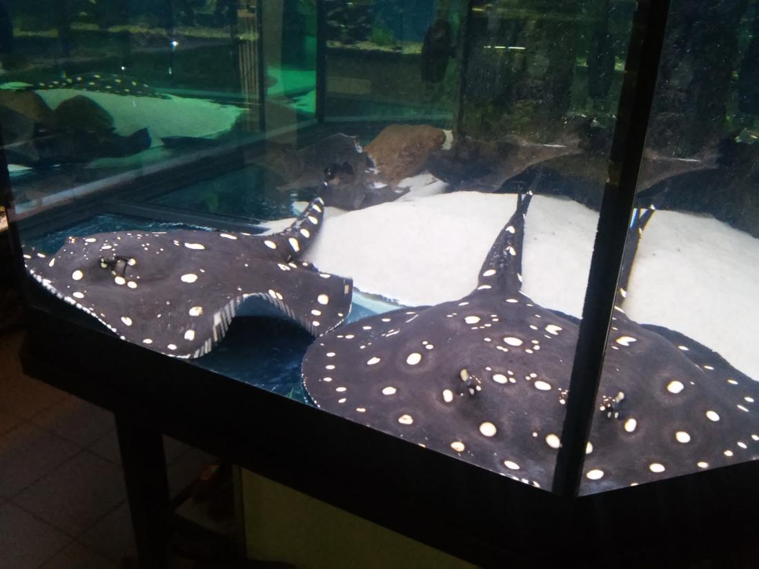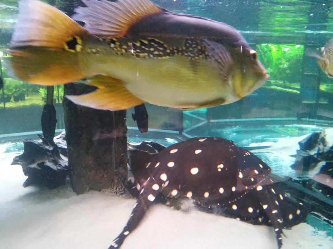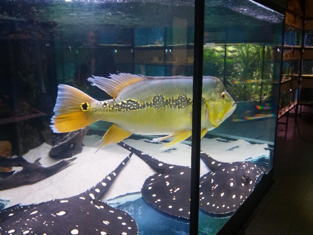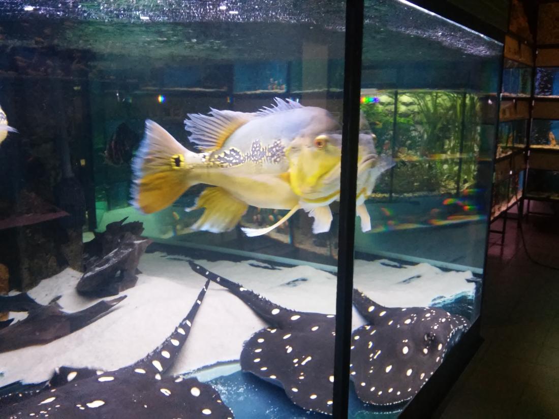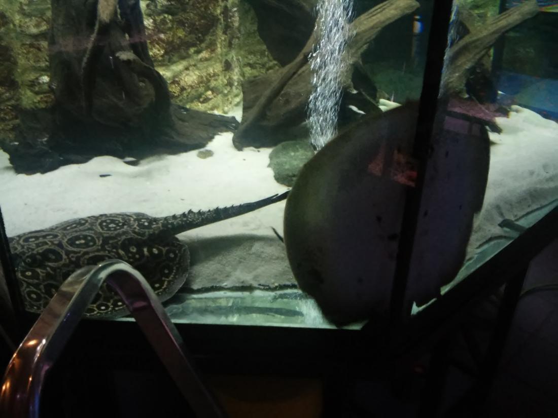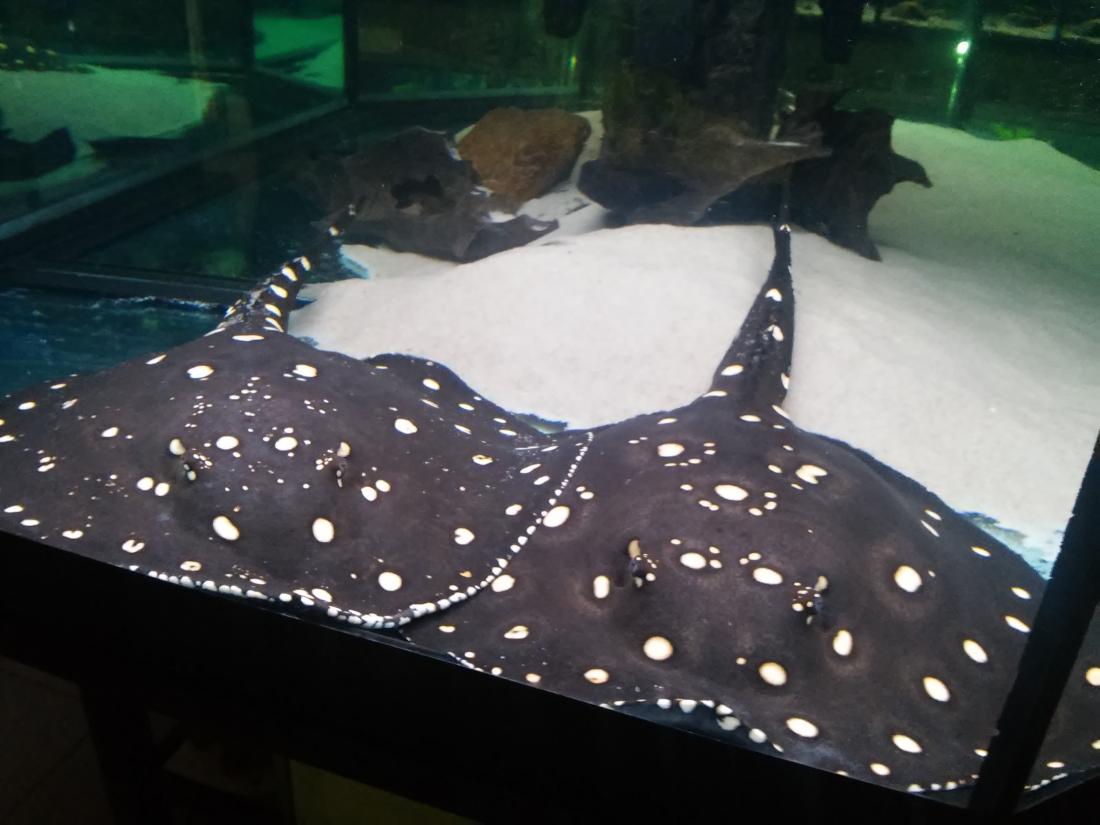 Štítek tam měli jurupari ale já je mezi sebou nerozeznám , bylo to malý stříbrný a měli je v nádrži dohromady s A. heckelii .... Jinak kromě skalárů s pěknejma ploutvema jsem si z klidný JA ničeho snad ani nevšiml , ještě nějaký cichlidky Apisto ale to si fakt nepamatuju jméno . Já slintal nad těma rajema ,cichlama a ocelátem :D . Takový ty pěkný hnědý flekatý trnuchy jsou prý nějaký Potamotrygon sp. pearl a jeden z těch dvou v páru má v sobě albinotickej gen a už se jim několikrát narodili mladý a prý byl v malých podvakrát jeden bílej kus . Jeden umřel jako malej a jeden se dožil dospělosti a jeho cena prý byla 100 000,- ???