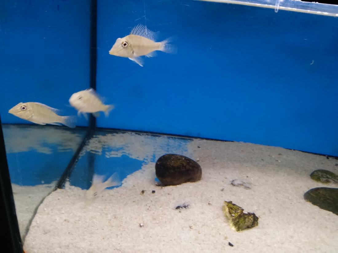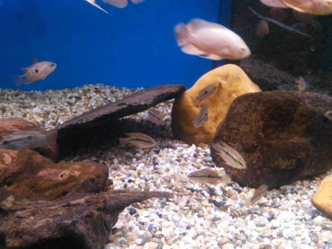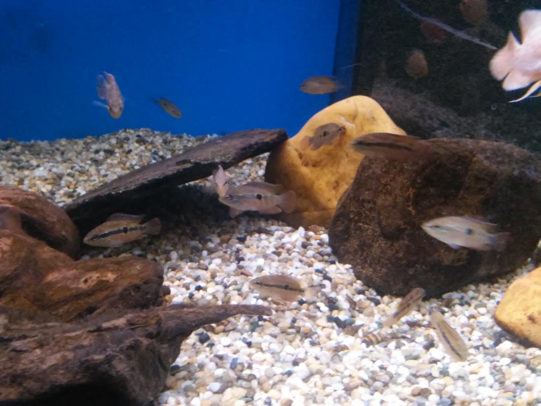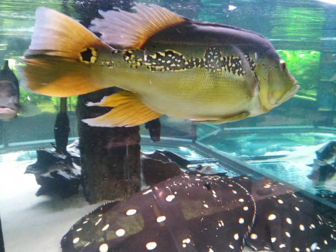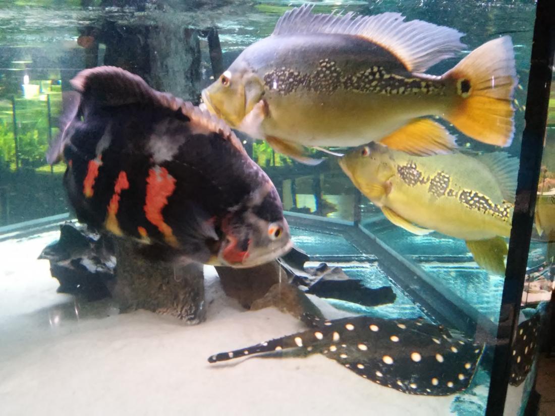 Štítek tam měli jurupari ale já je mezi sebou nerozeznám , bylo to malý stříbrný a měli je v nádrži dohromady s A. heckelii .... Jinak kromě skalárů s pěknejma ploutvema jsem si z klidný JA ničeho snad ani nevšiml , ještě nějaký cichlidky Apisto ale to si fakt nepamatuju jméno . Já slintal nad těma rajema ,cichlama a ocelátem :D . Takový ty pěkný hnědý flekatý trnuchy jsou prý nějaký Potamotrygon sp. pearl a jeden z těch dvou v páru má v sobě albinotickej gen a už se jim několikrát narodili mladý a prý byl v malých podvakrát jeden bílej kus . Jeden umřel jako malej a jeden se dožil dospělosti a jeho cena prý byla 100 000,- ???