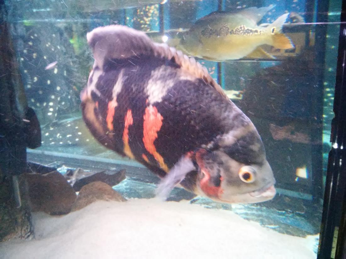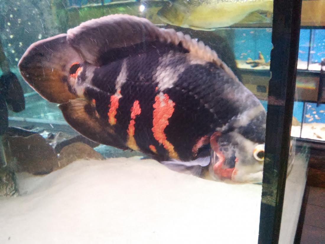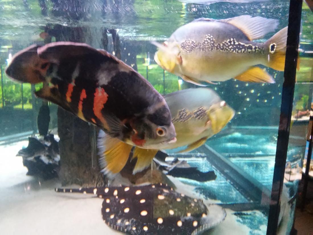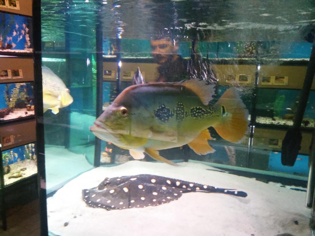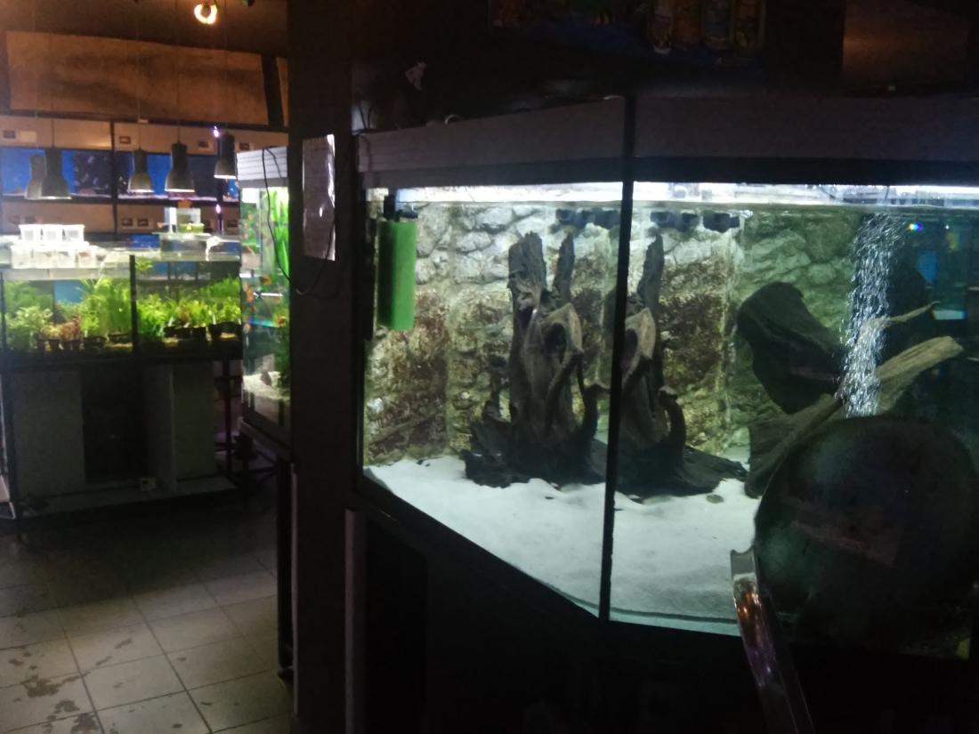 Obchůdek mě nejdřív překvapil tím že není nijak zvlášť velkej ale byl přehledně uspořádanej , perfektní obsluha která věděla o čem tenhle koníček je , uměli poradit lidem který se na něco ptali a hlavně mluvili pravdivě a necpali lidem do uší sr...y jen aby něco prodali ... Nádrže s rybama čistý , ryby opravdu v dobrým stavu i když většinou klasická nabídka ale nic potrhanýho , mrtvýho , divně plovoucího , fakt zdravý ryby , týpek zrovna měnil vodu v některých nádržích , vše OK . Uprostřed místnosti s nádržema centrální nádrž s Trnucham , Cichlama a myslím si jedním Astronotusem . Musím říct že tak veliký trnuchy ani cichly jsem neviděl :shock: a ocelát byl taky jeden z největších co jsem viděl . Trnuchy byly 2 samice a jeden samec , kterýmu se prý nechce do sexu i když mu holky nadbíhají :D . Samice měli v průměru cca 70cm možná i víc . Cichli měli tipuju 50+ cm , ocelát dobrejch 40+ cm Měli jsme štěstí že se zrovna i krmilo takže šplouchanici jsme si užili náramnou - voda stříkala přes půl místnosti ... Jinak z cichlid byly k vidění namátkou A. ocelatus v různých formách , C. monoculus , C. salvini ty byly opravdu krásný a už ve velikosti cca 4-5cm hráli barvama , A. rivulatus , H. carpintis , S. jurupari , krásný R. octofasciatus , A. heckelii , G. geayi , .......