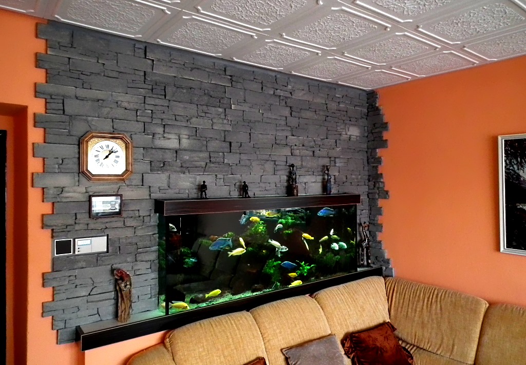 Dominik829 : Dík za komentář. Snad jsem to udělal jak se patří. Konzultoval jsem se zedníkem, který mi dělal před sedmi léty veškerou zednickou práci kolem akvária. Malba oškrábaná, napenetrovaná. Lepidlo na obklady DenBraven. Obklad není přírodní kámen, i když jsem rád, že tak působí, ale umělý kámen viz. foto.
