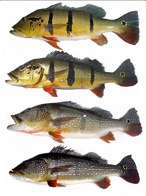 ĎALŠIE NÁZVY: Three-barred peacock, Speckled peacock, Tucunare, Acu, Paca, Giant peacock