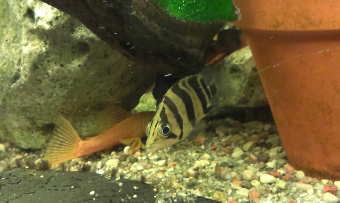 Byly ve velikosti cca 3cm . Dnes mám už jen dva kousky . Dva se umlátili mezi sebou - kupodivu ty dva větší ..... Jsou to dost plachý potvory ale když mají hlad tak se předvádějí i před předním sklem . Když zhasnu honěj se jako koně ale ani na jednom není ráno vidět nějaký zranění . S krmením je to složitější , byly odchovaný na patentkách a dost dlouho mi nic jinýho nebrali . Ale moc jsem se s nima nemazal a když měli hlad naučili se nakonec brát i hovězí srdce , krevetky a teď už oždibujou i rybý filety . Granule jsem je ještě žrát neviděl . Taky přebytečný gupky a mečovky jim hodně jeli ale těch není nikdy dost ....