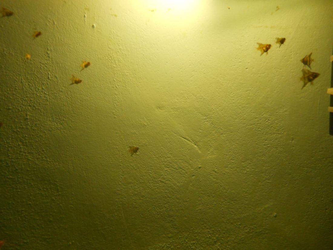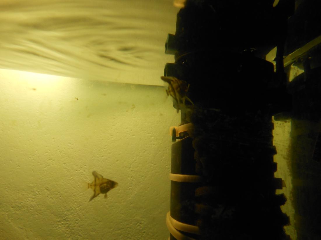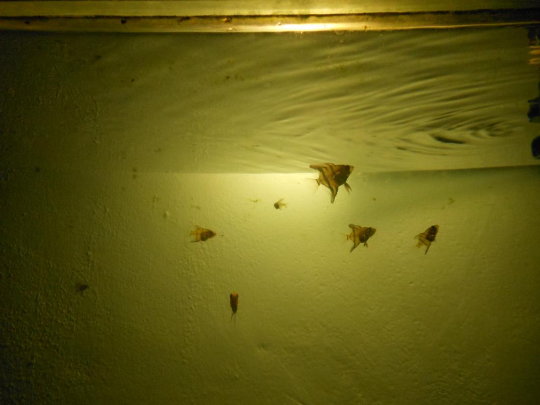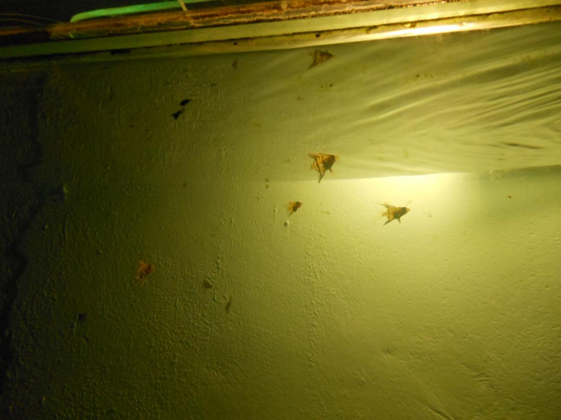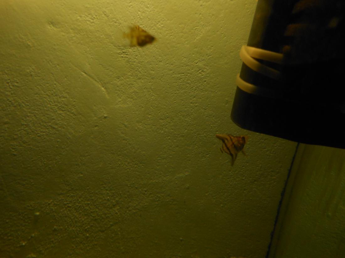 Odchoval jsem bez rodičů a to proto ,že jsem potřeboval vyzkoušet líhnivost jiker ve vodě z lesní studánky.Jikry jsem jim odebral ,neměl jsem v úmyslu to odchovat z prostorových důvodů ,ale když jsem viděl že se kulý ven z jiker nějak mi to nedalo .Na rozkrmení potěru jsem použil vajíčka komarů culex z nich se líhli miniaturní larvičky,ale musím se na příští rok vyvarovat některých chyb a to ,že menší počet vajíček komárů. Donesl jsem jich mnoho a ty rychleji rostly a potěr se tím dávil.A chci je rozkrmit na namletých žížalách.tak jako doposud všechno.Foto dospělců nemám ,ted nemůžu setřít řasy ze skla ,protože by dospělý scaláry byby oslnovány světlem z akvárka s těma hle malinkýma scalárama.Proto potřebuju zastíněnou přední stěnu nádrže.Zjistil jsem, že umělé světlo dopadající z jednoho bodu přes čelní sklo jim vadí a lekají se pohybu .Pokud se jim svítí ze shora ,tak se předvádí .Ale fotky budou .Zrovna předevčírem se třely dva páry naráz a roztomile se u toho hašteřily .jsou to strašně veselý ryby.A ještě jeden úspěch mám a to že mám výtěr beta splendens,neskutečně malinký potěr a to jsem si myslel jak maj scaláry malý potěr tohle je ještě jednou tak malé.Syn si na výstavě koupil bety ,tak jsem mu slíbyl že je rozmnožíme ,to se povedlo a co bude dál uvidíme.