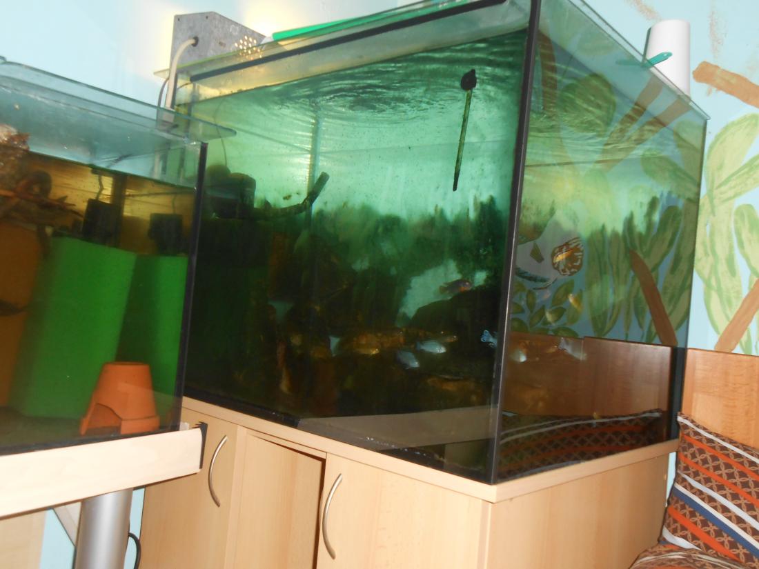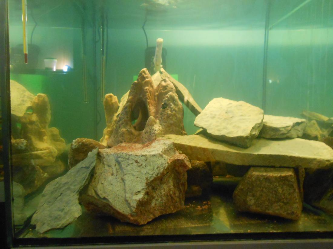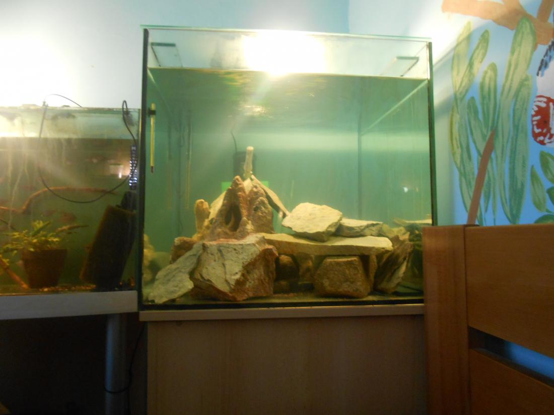 Malawi už jede ,fotky na hovno ,snad se povedou lepší.U Johanek to vypadá na jednu samici a 4 samce ,u auratusu na jednoho samce a 4 samice samec už tmavne,u socolofek jeden jistej samec a zbytek nevim a labidochromis samec a snad dvě samice.perfektně ozobavaj řasy a ty rostou fest ,přikrmuju živou dafnií a černým komárem ,aktivní a žravý jak maj bejt .musím měřit vodu při zvýšeným dusíkem se otírají ,tak měnim co tři dny polovinu.Filtr není tak perfektně zajetej ,jak by měl ,tak to měřim a lepší se to.Na fotce ,kde jsou anubiasy ,tak tam budou taky tlamky ,ale ty co se nám naroděj ,ale to je ještě zadlouho .A na fotce utlamek je akva s květináčkem ,to se zajíždí na ramirezky .Tam jsem nasadil dafnii a docela se množí.