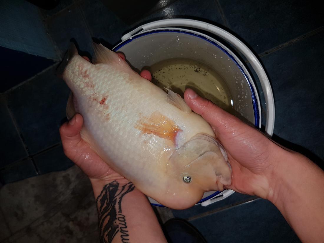Tak prvé dve ryby sú tam. Jeden menší ocelat a jedna gurama, ktorá neskôr poslúži ako potrava. Dúfam že sa im bude dariť.