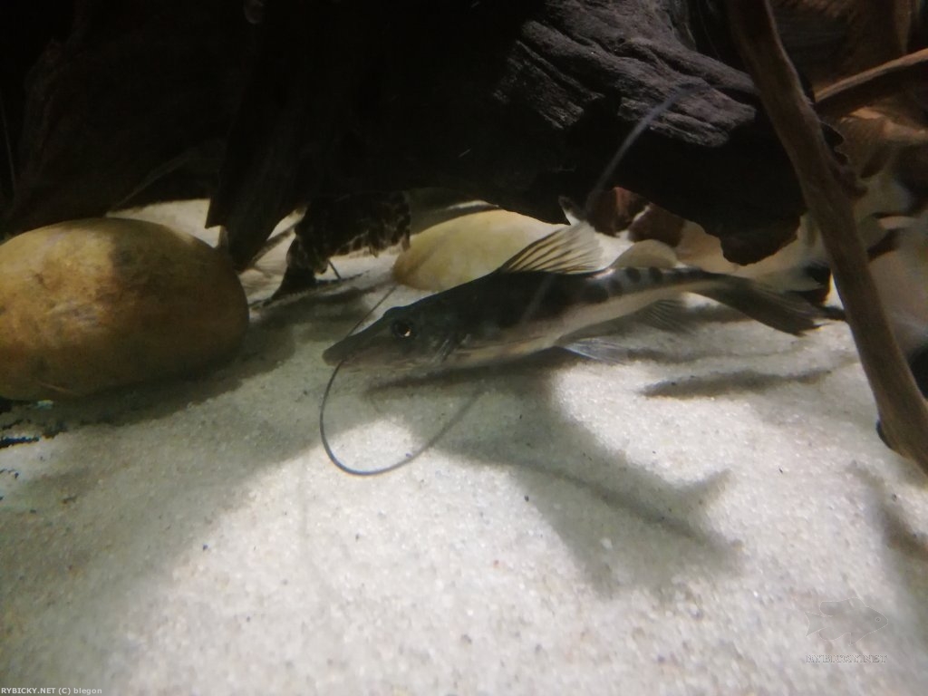 Ohledně vousů je to sumec kouzelník, i přes tu délku si je dovede neskutečně pohlídat, ostatní ryby moc nezajímají, obecně sumec je pro ně dost neviditelný a další věc je to že mu neuvěřitelně rychle dorůstají.