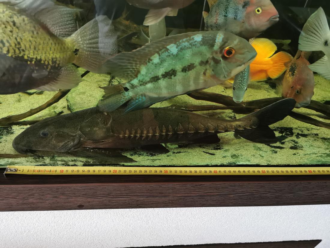Pár mesiacov dozadu sa mi naskytla možnosť si zadovážiť ( niektorí vedia od koho) tentokrát väčší kúsok a to 68 cm. Ten je už viditeľnejší v nádrži a ako sa hovorí " aj slepý človek si ho všimne" . Zatiaľ robí radosť, svojou "ľahkosťou" si pláva po nádrži.
