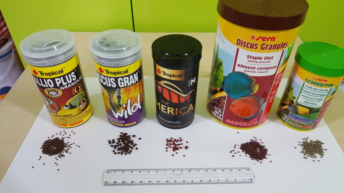 Tiež som kŕmil sera discus granulami a boli fajn,potom som skúsil tetra discus granule ale tie dlho plávajú na hladine a keďže mám na vnútornom filtri nasavanie na hladine veľa granul zhltol filter. Inak mrvili sa aj sera aj terra.