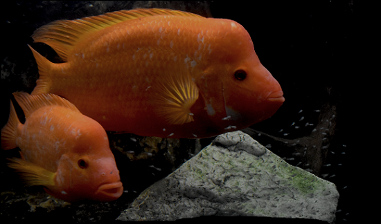 Amphilophus pair with babies cichlid klub.png