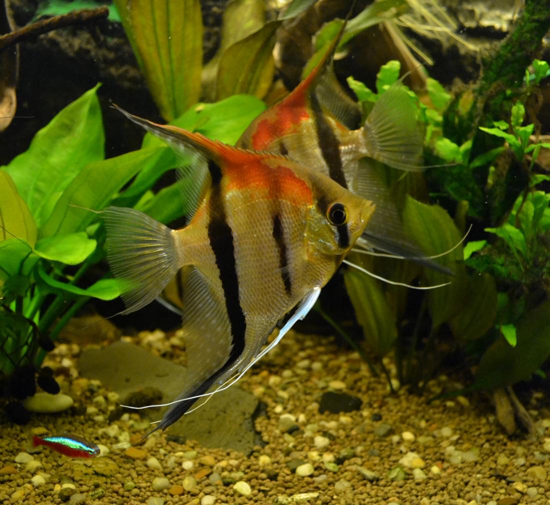 Ryby v nádrži: Pterophyllum sp. Nanay 8ks, Pterophyllum scalare "manacapuru" 4ks, pár neoniek, prisavnikov a momentálne iba jeden corydoras sterbai