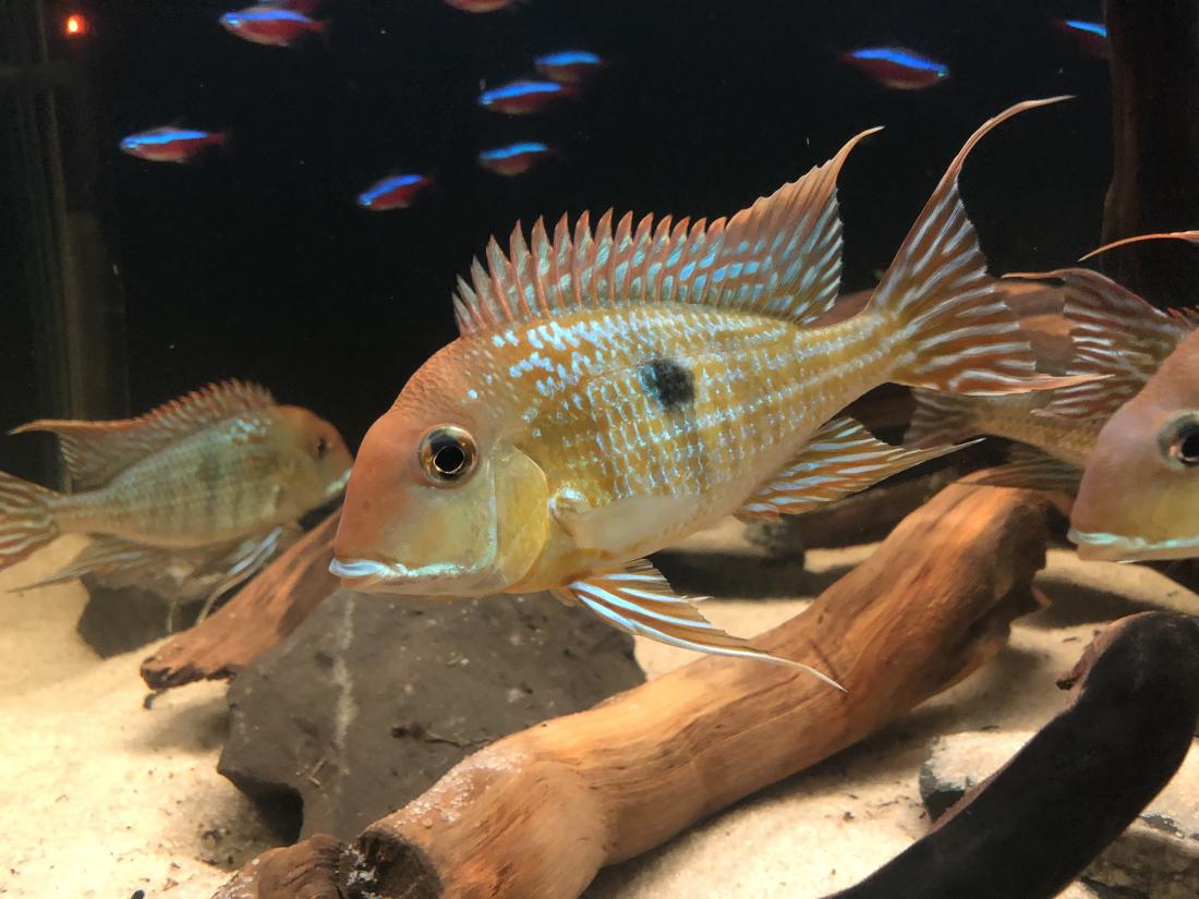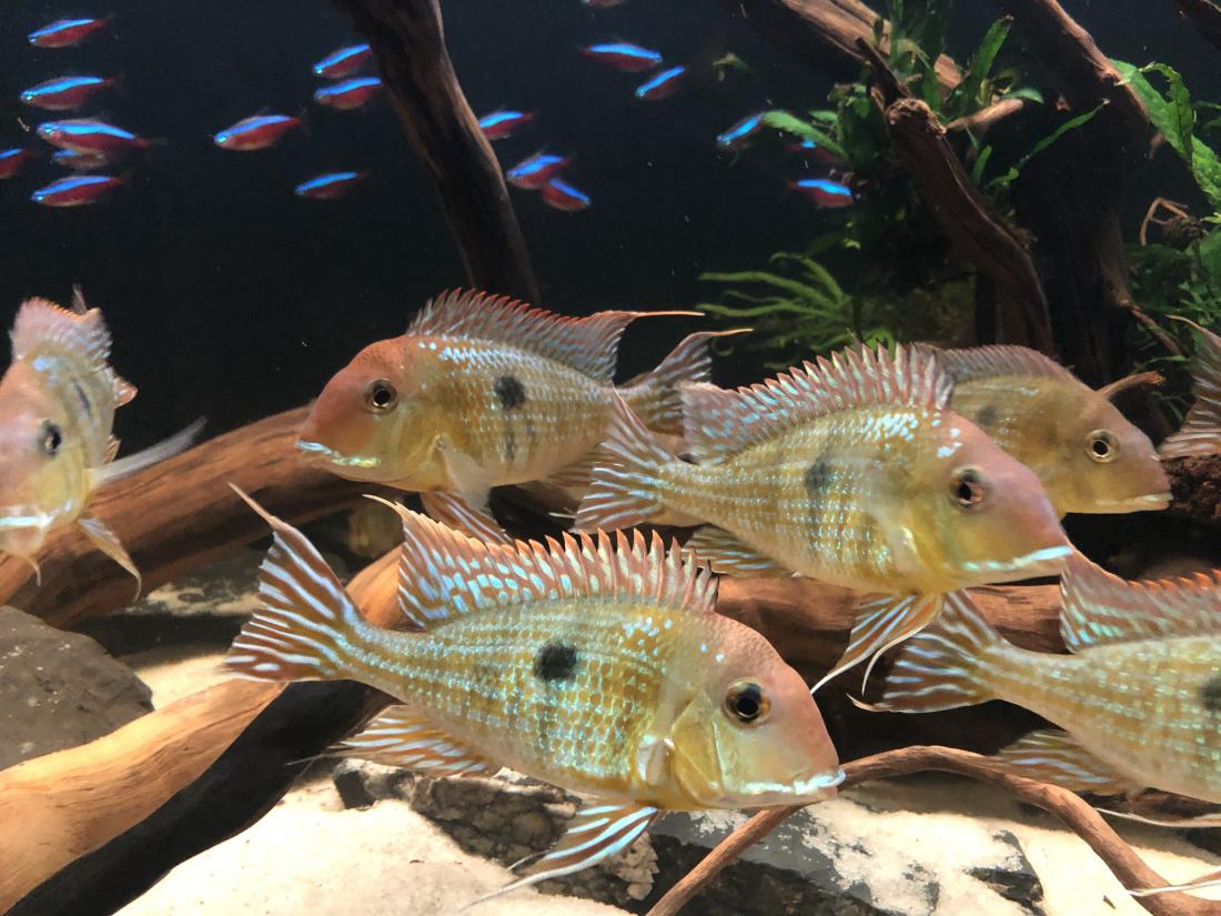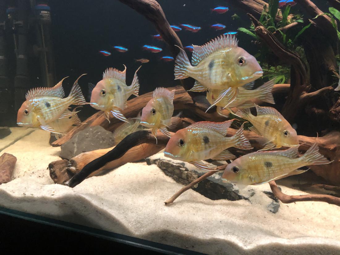 Takzě v brzké době bych to rád zredukoval na 6 geophágů (3 páry). Ancíka si nechám jednoho a seženu mu dvě samice (zdroj by byl). Neonek je cca 22, většina má kolem tří let, takže tam taky dlouho nebudou.