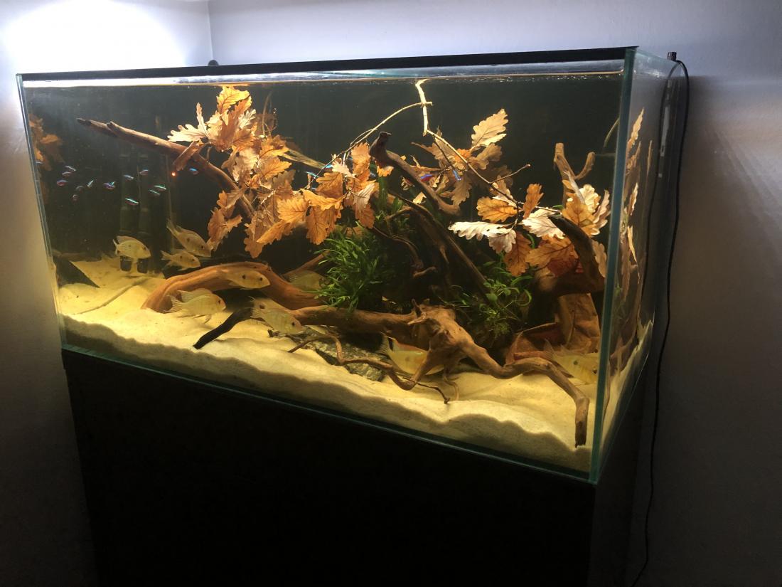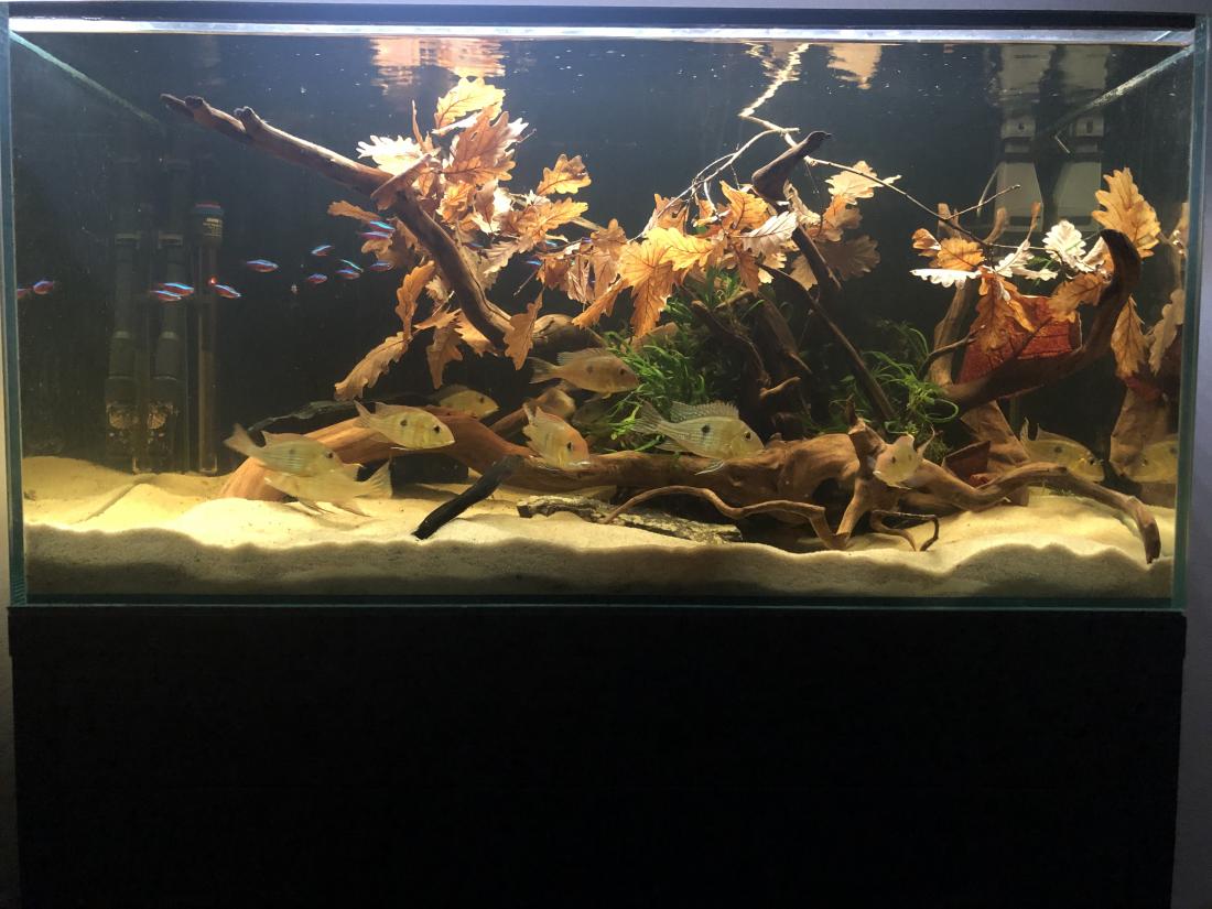 Přemýšlím čím bych akvárium výhledově doplnil. Další geoše asi ne. Ty biotodomy, guianacary nejsem si jist. Přecijen b to chtělo spíš ještě o kousek menší ryby... Něco menšího a do středu nebo horní části nádrže.