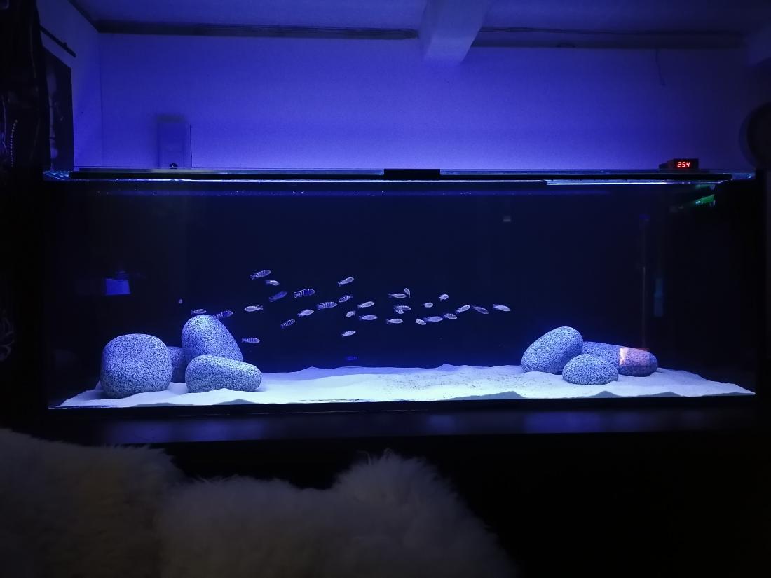 Osvetlenie nádrže: Led vlastní výroba. Studená bílá/modrá