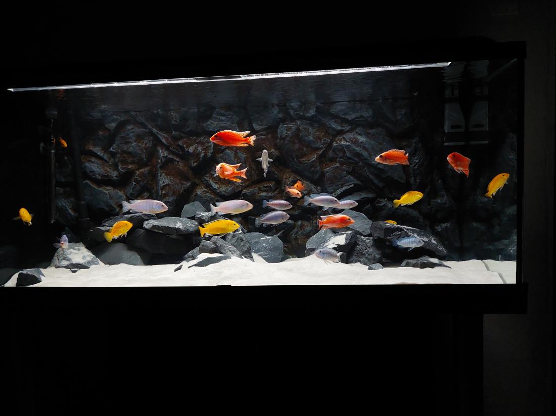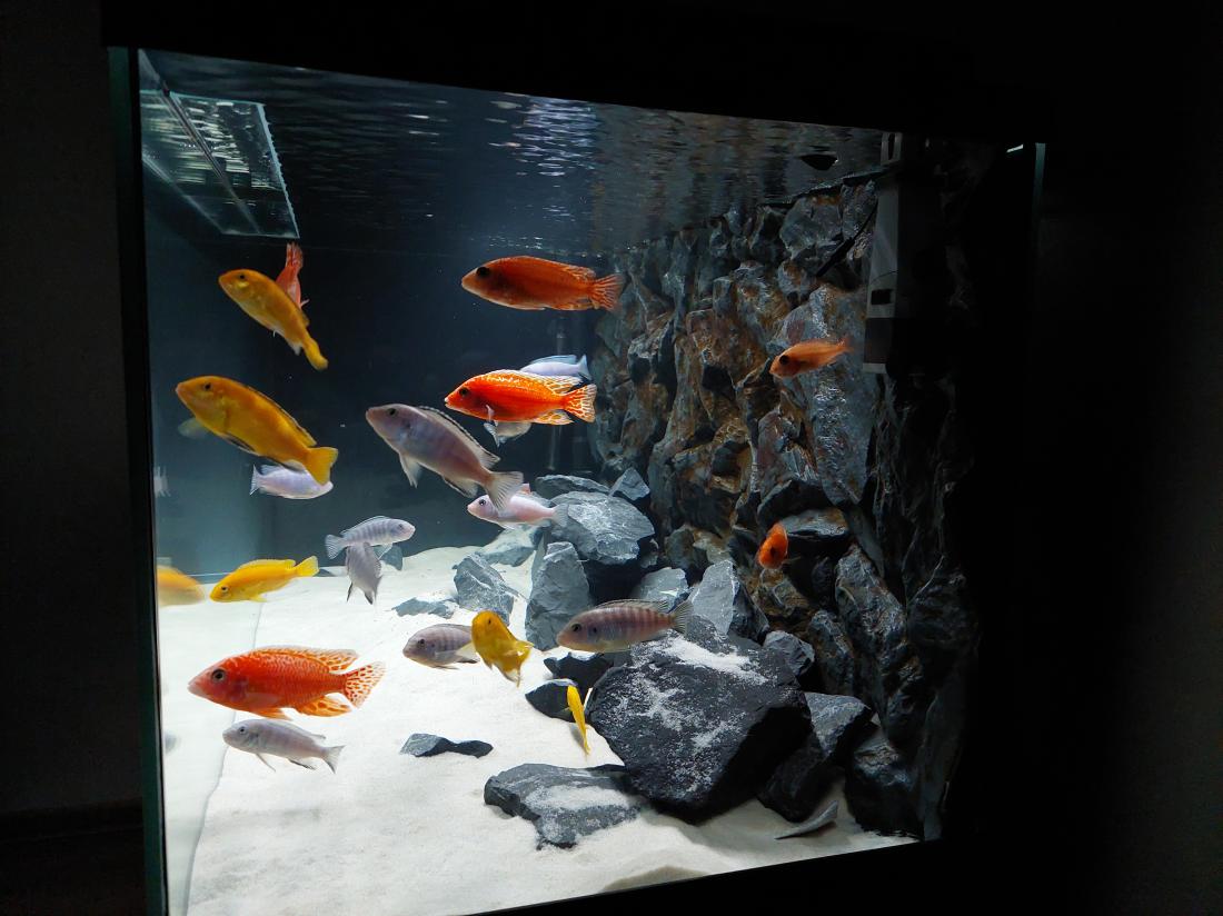 Na videu sú v spodnej polovici a hlavne kľudné s plnými pupkami. Inak sa preháňajú po celom akváriu a hlavne pred kŕmením sú to fofry