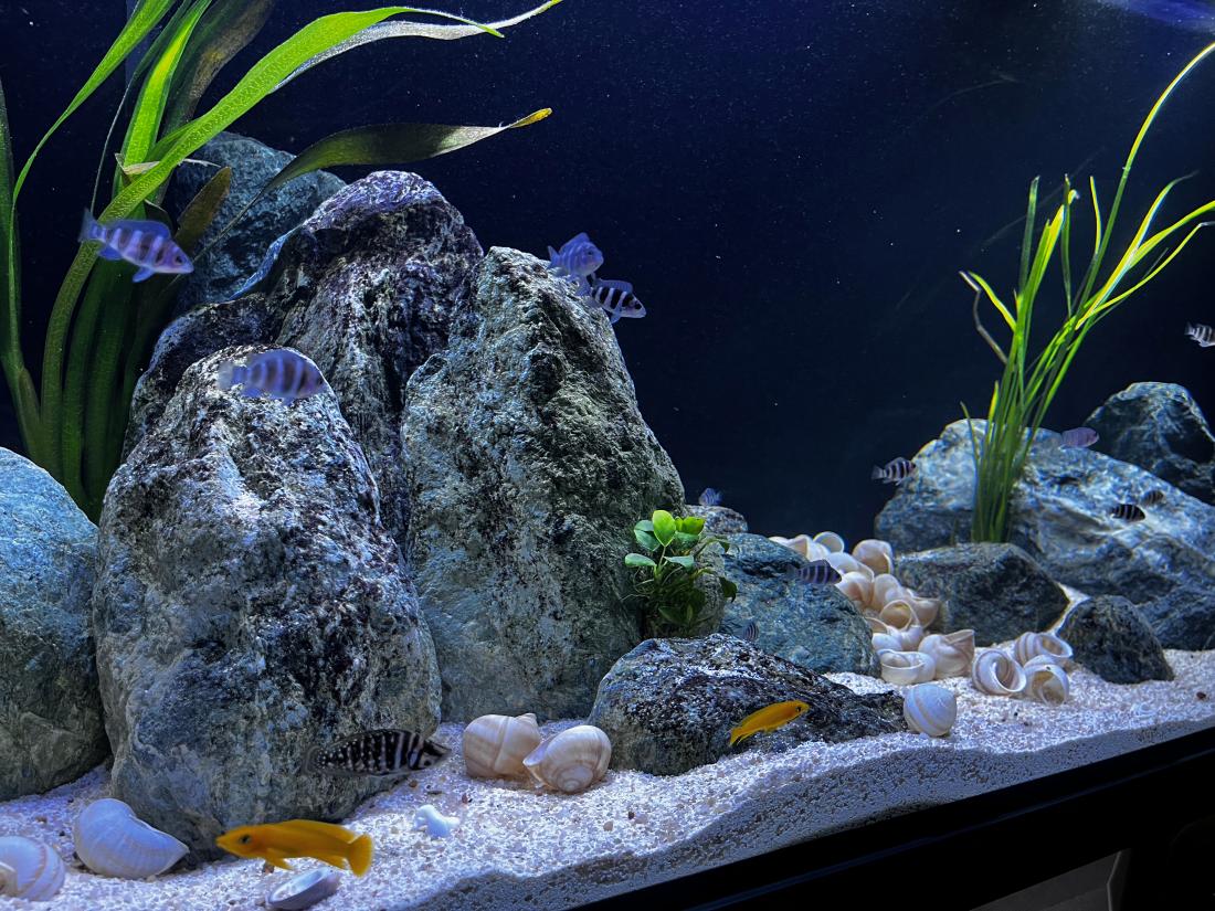 Dekorácia v nádrži: kameny, ulity, písek mix