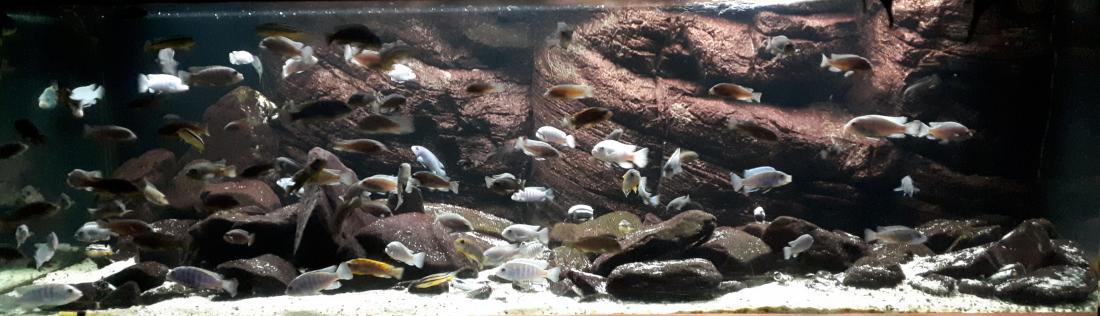 Trochu sa "stratili" farby: staré ryby časom pošli a nevynosili mladé (resp. nosili, ale nič nedokázalo v konkurencii prežiť - konkrétne tie oranžové Metriaclimy); potom pred nejakým časom som si zaniesol nejakú chorobu s novými rybami, tak aj viac ako polovica osádky postupne uhynula, ale už sa to namnožilo späť. Inak si to žije vlastným životom, n-generácií.