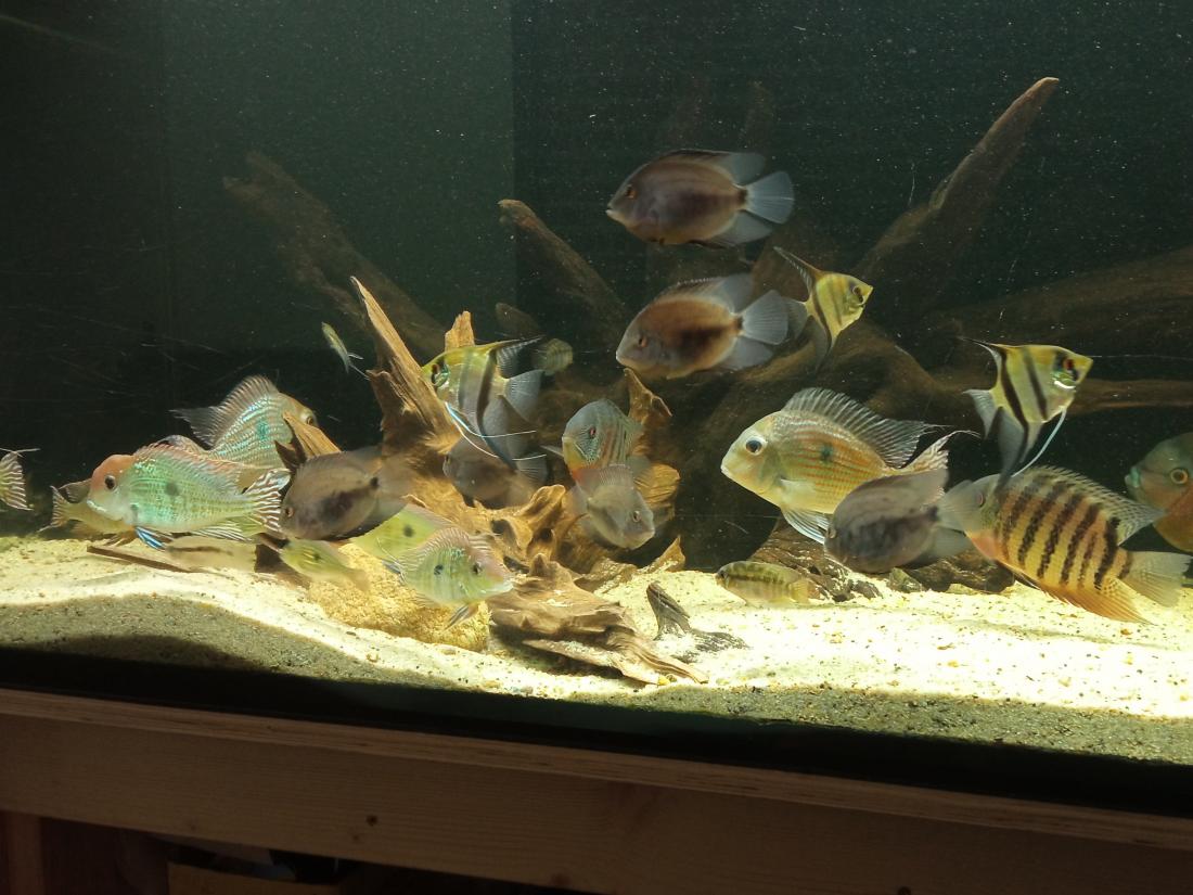 Od soboty u mě plavou 4ks Geophagus sveni Araguaia od Satyho z jeho odchovu. Díky za ně, snad jsi stihl tu prohlídku podzemí. Ryby se okamžitě zapojily do hejna a bezvadně fungují. Jinak je v akva klid a pohoda. Mladé ryby rostou, jak z vody - hlavně Uaru. Krobie se navzájem pořád prohánějí. Red Head a Caete se občas vytřou. Curare pomalu dorůstají Rotkeila. jen ta samice temporalis vypadá, že mě brzy opustí. Jinak vše funguje dobře ;) Slibuji, že přidám nějaké fotky.