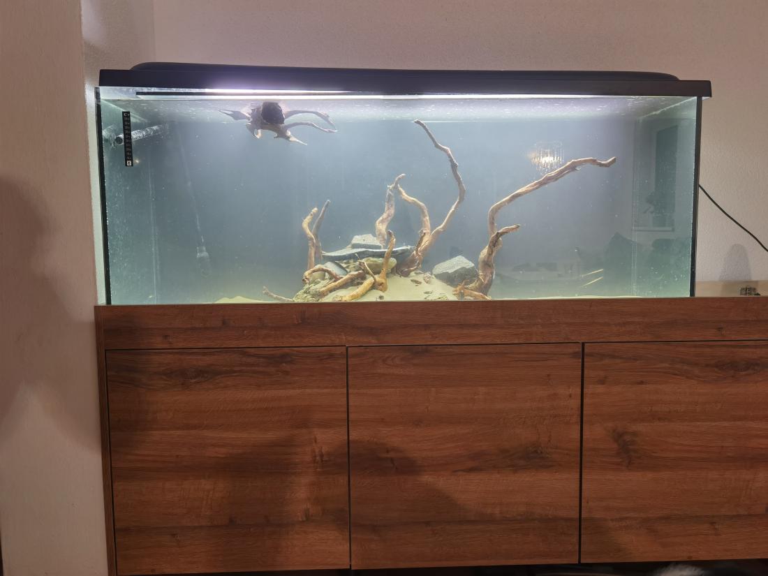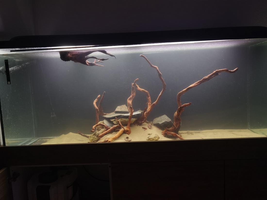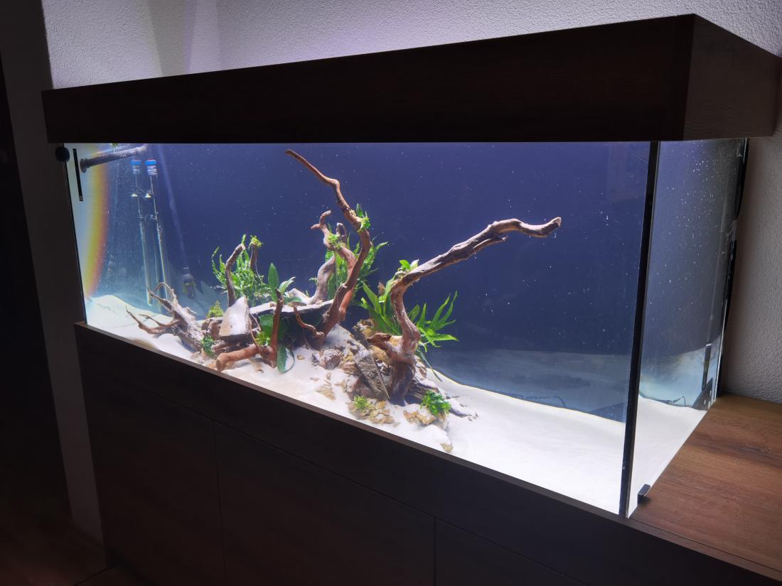 Tak a zas vymýšľam co s týmto akvarkom. Po prestavbe celej obývačky som sa dal aj na prestavbu akvária. Vymenil som čierny piesok za biely. Ešte musím minimálne 8kg dosypať a skúsil som to na štýl hardscapu čo je teraz veľmi vychýrené