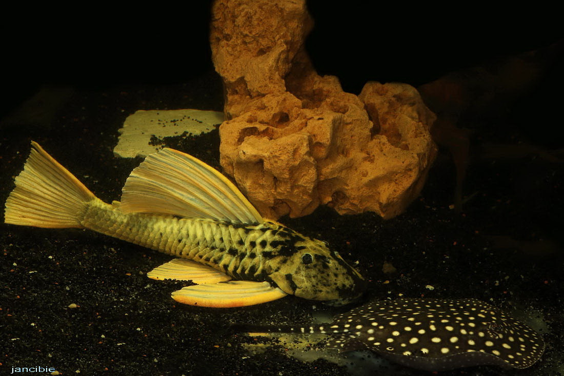 Jirka B. píše:Můj mazlík. Přemýšlím, ze bych mu pořídil kámoše. Teď má Glaser v nabídce L95a Pseudorinelep.genibarbis ve velikosti 11-14 cm. Přes.Vivarium vyjde na 1237 kč. Je to asi ta míň barevná varianta bez oranžových lemů ploutví.