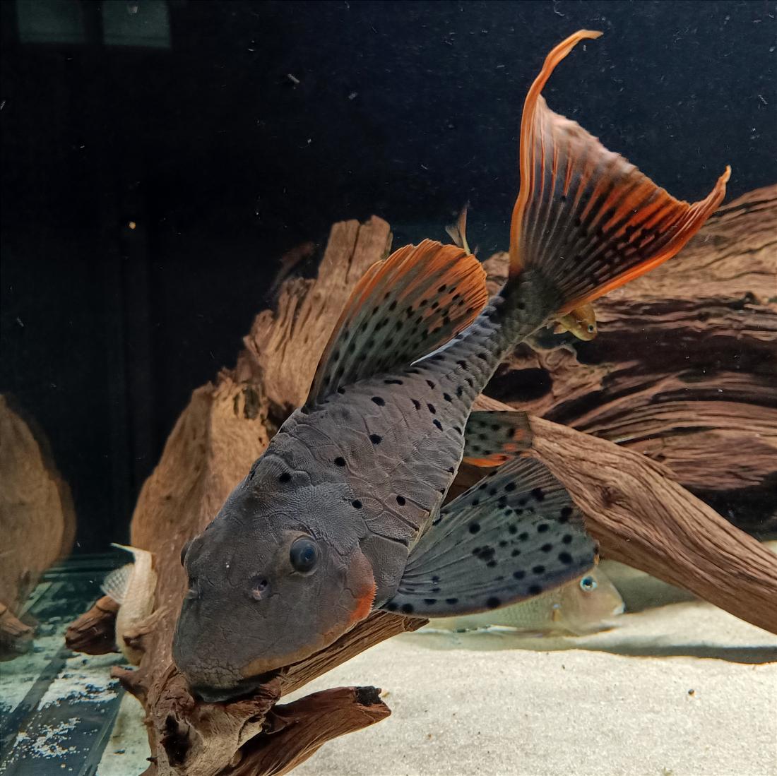 Můj mazlík. Přemýšlím, ze bych mu pořídil kámoše. Teď má Glaser v nabídce L95a Pseudorinelep.genibarbis ve velikosti 11-14 cm. Přes.Vivarium vyjde na 1237 kč. Je to asi ta míň barevná varianta bez oranžových lemů ploutví.