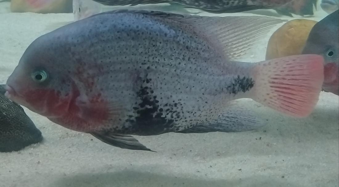 Na jaře jsem tu rybku odlovil z kámošova krokodýlího akvaterka, kde byla určena na sežračku. Byla mezi haldou mladých cichlid se zjevnými růstovými vadami, ale svého taxonu jediná a narozdíl od nich i pěkně rostlá. Škoda ji zkrmit (někdo měl asi špatně prodejné přebytky a tak ji přihodil k vadným). Potrhané ploutve a šrámy se rychle vyhojily, dnes je to fešák/fešanda hýřící barvami. Např ocásek má celý sytě červený a i na skřelích je červená na docela velké ploše. Že by kluk? Je to ale jen můj laický odhad, podle fotek a videí na netu se nemám pořádně čeho chytit - ostatně, jak zde ve vláknu někdo dříve poznamenal, vypadají "takový plesnivý", co se na nich komu líbí? No akorát že takto vypadají pouze na fotkách. Naprosto jasně se tyhle krásky musí vidět naživo, jinak to nejde. Jakmile na toho našeho mládence (anebo zákrska? Měl by být mladý, přesný věk ale neznám) zasvítí sluníčko, ježkovy voči, do té chvíle neviditelný hustý propletenec meandrovité kresby v metalických barvách, z nichž polovinu ani neumím pojmenovat, mu po celém těle září jak reflektor! Něco neskutečného... A to je nejspíš teprv "ještě nevybarvený" puberťák.