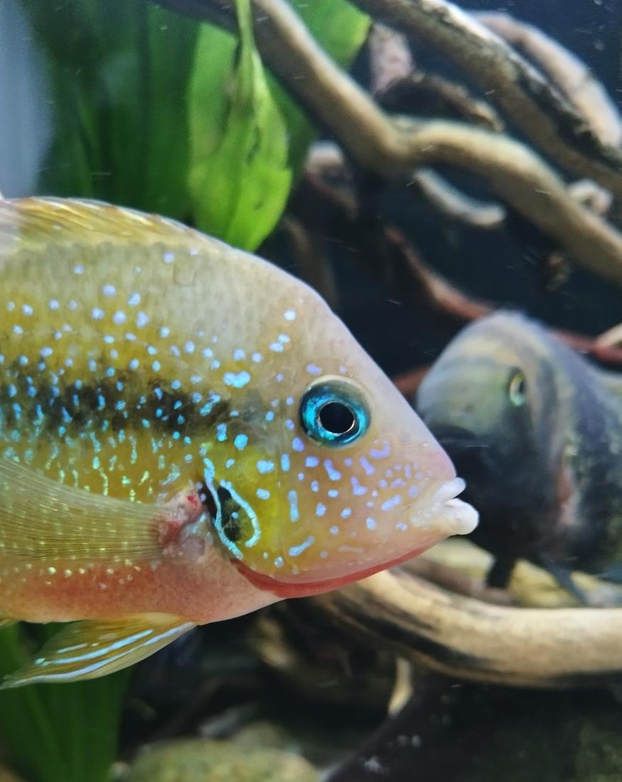 U mňa to mali ryby podobné, skôr ale na hornej pere. Akoby sa im zasekla tlama opuchla a nemohli ani zívať. Boli Apatické a neskôr nežrali schovávali nehájili si už svoje územie a len parkovali na dne a moc sa nehýbali a dovolovali si na ne iné ryby. Zaujímavé že len samci nikaraguensis, carpintis a catemaco samice nikdy. Vraj je to parazit ako Octomitus a Hexamita pri oslabení organizmu zo stresu ale neviem to naisto. U mňa im pomohol asi troj či štvordňový kúpeľ vo veľkom kýbli v dvadsiatich litroch vody s pridaným entizolom so vzduchovaním. Neviem už presne ale asi to bolo dávkovanie jedna tabletka 250mg na 20l. Po 24 hodinách som vymenil vodu za novú z akvárka zas rozdrvil a rozpustil tabletku v malom množstve vody a nalial do kýbla. Dva krát to mal carpintis a vždy sa z toho po kúre dostal. Bol síce trochu vyblednutý ale zas sa rozožral a bol pekný ako predtým. Ale ako som písal neviem či to je aj u teba to isté. Ak áno a pomohla by táto kúra bolo by to super, je to krásna ryba bola by jej škoda. Ale sú tu skúsenejší ľudia možno ti poradia. Držím palce
