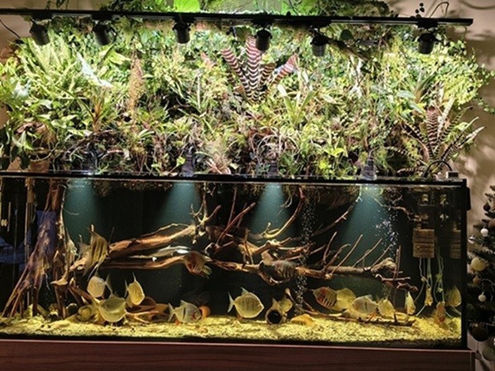 Vypadá to fakt skvěle Mě by se tam líbili ještě nějaký menší, ale ne zase moc malý tetry ve velkém hejnu, které by se drželi blíž k hladině. Máš to super s tou džunglí nad vodou.