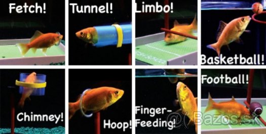 O akvárijných rybičkách sa hovorí, že neudržia žiadnu informáciu dlhšie ako 5 minút. Je na čase dokázať, že to tak nieje a naučiť svoju rybičku nejaký trik, s ktorým sa potom môžete chváliť pred známymi. S touto sadou pre výcvik akvárijných rybičiek môžete svoju rybku naučiť napríklad hrať futbal, basketbal, rugby alebo ju nechať plávať slalom medzi obručami. Isté je, že rybičke pohyb prospeje a vy s ňou zažijete veľa zábavy pri učení nových trikov.