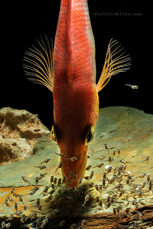 Nie že nechal... oni zostali. Myslím, že z pôvodných od Ľuda Fujka mám ešte 2 alebo 3. Ale myslím, že všetko sú samci. So samicami sa mi opakoval problém - prestali žrať, sedeli na dne, pri plávaní sa úplne trápili, neplávali pomocou plutiev, ale pohybom celého tela. Od tých istých istých rodičov mám potom ďalšie 4 ryby z neskoršieho výteru a najmenšie 4 sú od Stiffa.