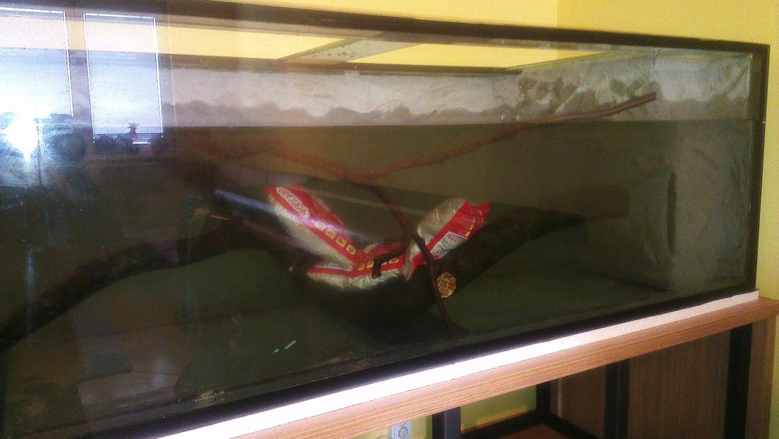 Dekorácia v nádrži: piesok, konáre, zadná a pravá strana – vstavané pozadie (materiál netúším – tajomstvo autora)