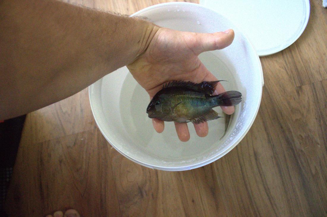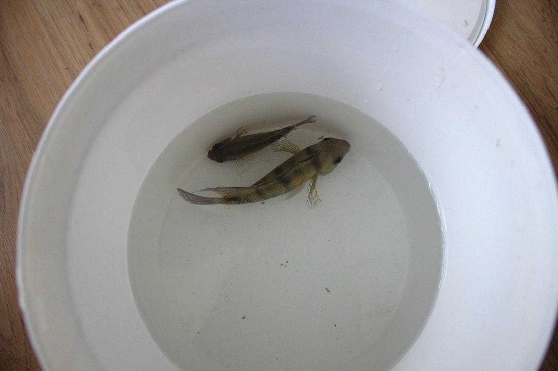 Párově to jsou bezproblémové ryby, zamilovaní až po uši, neustále u sebe jako na provázku a jelikož jsem je kvůli neustálému přívalu mladých držel i nějaký čas odděleně, zažil jsem si i jejich znovusetkávání, kdy z těch dvou vyloženě zářila radost, i když to jsou "jenom" ryby. Při dnešním přelovování se po delší době potkaly až v kyblíku, ani to je je nevyrušilo od natřásání, otírání a kroužení jednoho kolem druhého.