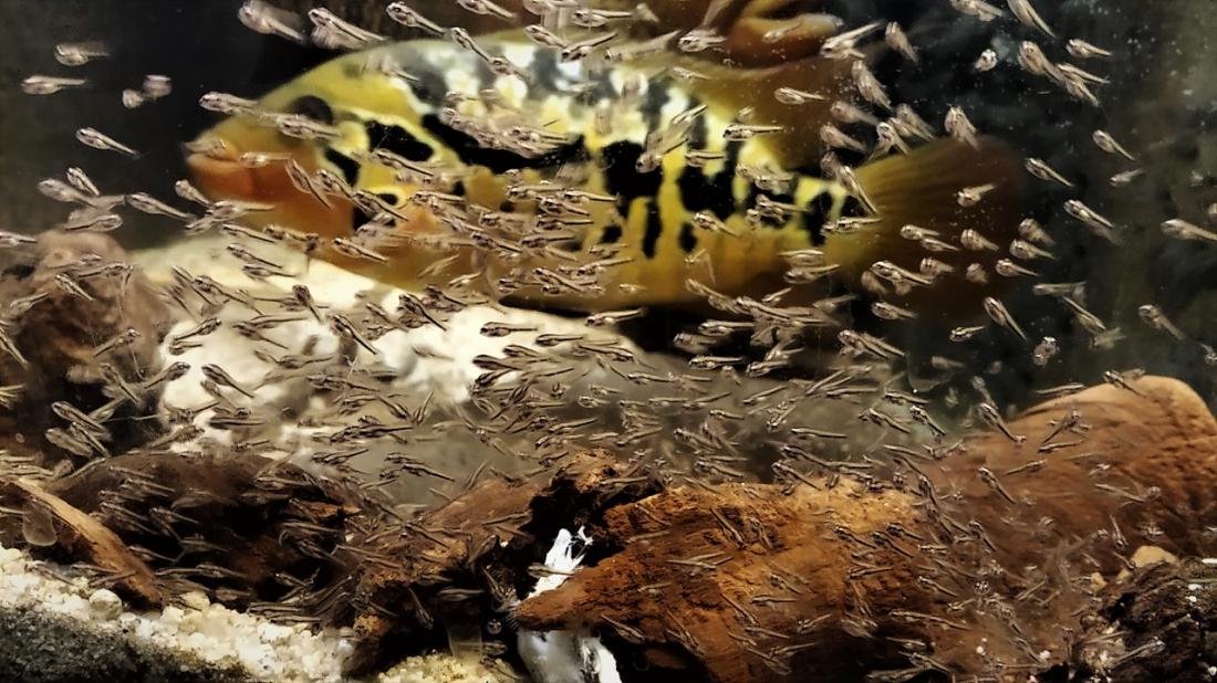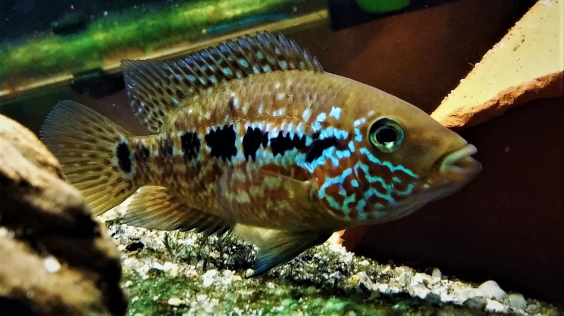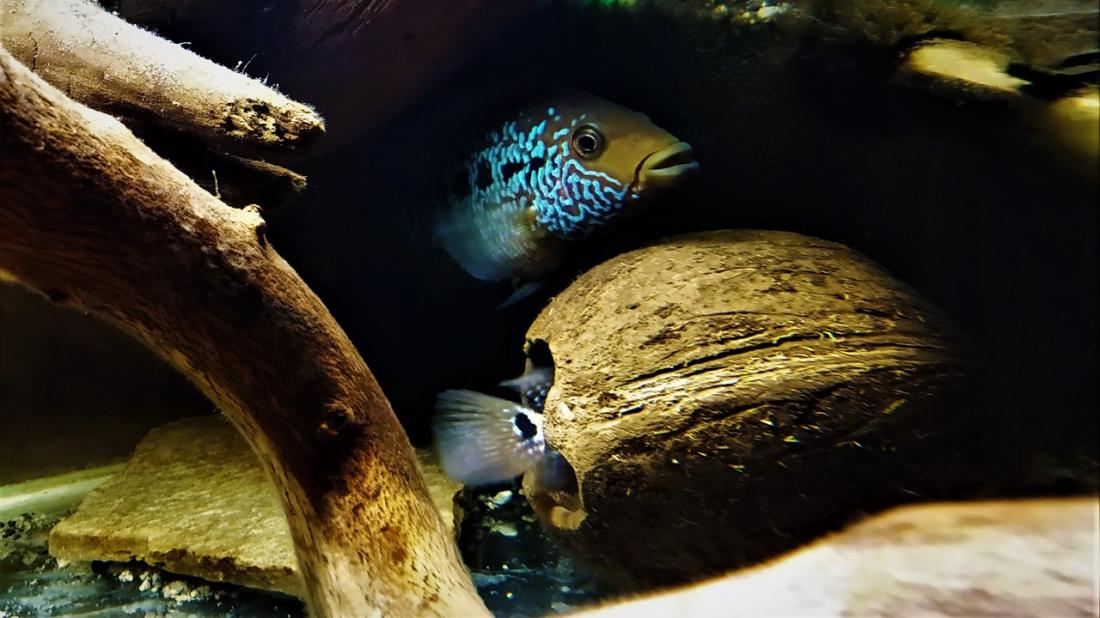 Těchhle mutačních mám patnáct (na předchozí straně jsou ještě fotky samiček), objevili se mi v jednom jediném výtěru a už jako malincí se dost lišili od ostatních. Teď jdou pomalu do puberty, začínají si hledat partnery, tak je mám rozhozené v několika akváriích mezi klasikou. Teď už mám jeden pár sourozenecký kvůli upevnění znaků, jeden se vzdálenější příbuznou s klasickým zbarvením a jeden se zcela nepříbuznou samičkou. Ty už mají vlastní akvárka.
