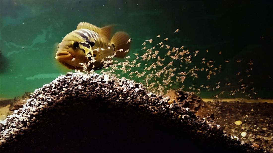 Úměrně své velikosti a momentální chuti. To se různí. Někdy jsou schopni předstírat, že týden nejedli a nacpat se k prasknutí, jindy si jenom tak zobnou a plavou pryč :D